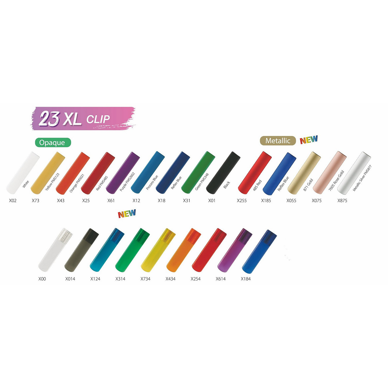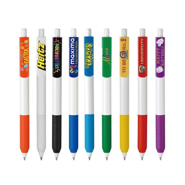 BIG Imprints happen here. Alamo barrels feature a BIG 300° imprint area for MAXIMUM imprint messaging. Set up for your BIG Imprint is included. Choose from 29 different colors of XL Clips, or 39 different colors of standard clips. The pure black that was used to be known as "Alamo Onyx" is now part of the Vivid family! Complies with Prop 65. 6" L x 0.4" W x 0.6" H