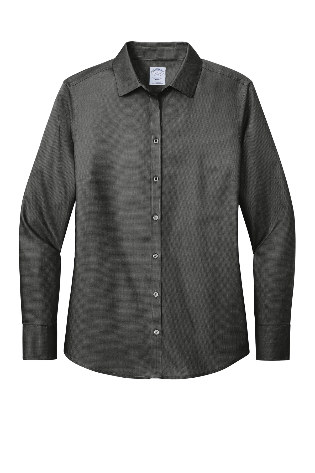 Balancing a professional look with business-casual style our nailhead dress shirt features a subtle two-color pattern and a soft hand. A premium wrinkle-free treatment process keeps it looking sharp and stylish all day.4-ounce 95/5 cotton/spandex fine yarn countOpen collarBust dartsBack panel dartsTaped seamsDyed-to-match buttons with Brooks Brothers logoRounded adjustable cuffs**