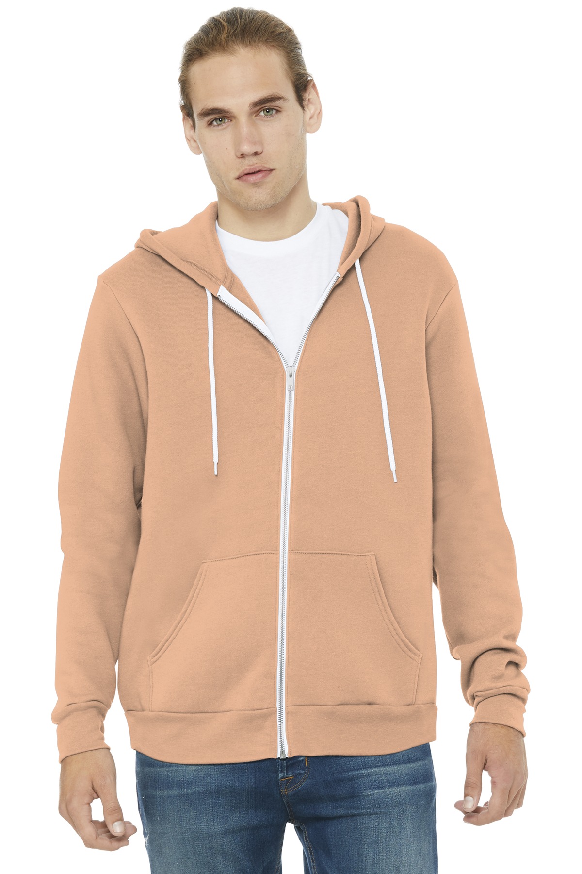 Retail fit Tear-away label White drawcords Side seamed Full-zip with white taping Rib knit cuffs and hem Solid Colors and Heather Colors: 8-ounce 52/48 Airlume combed and ring spun cotton/poly fleece 32 singles Athletic Heather: 8-ounce 90/10 Airlume combed and ring spun cotton/poly fleece 32 singles Heather Navy: 8-ounce 60/40 Airlume combed and ring spun cotton/poly fleece 32 singles DTG Colors: 8-ounce 70/30 Airlume combed and ring spun cotton/poly fleece 32 singles Black available up to 3XL
