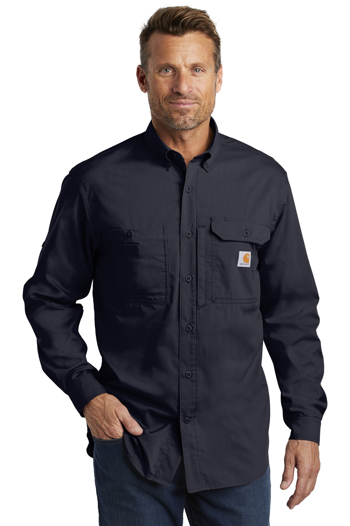 Dont let the heat stop you from a long day outdoors. The Ridgefield wicks sweat releases stains in the wash and has a mesh-lined back to keep you cool as a catfish. 3-ounce 60/40 poly/cotton sheeting FastDry technology wicks away sweat Stain Breaker technology releases stains Double-layer collar converts to stand-up collar for extra sun protection Mesh-lined vent at center back for flow-through ventilation Articulated elbows Convertible roll sleeves with buttons Four chest pockets: Left has buttoned-flap pocket with an oversized concealed zippered mesh-lined vertical pocket; Right has two easy-entry pockets: one with button closure one with hook and loop closure Contrast color neck piping Carhartt label sewn on left chest pocket Carhartt Force labeling on inner back neck Relaxed fit