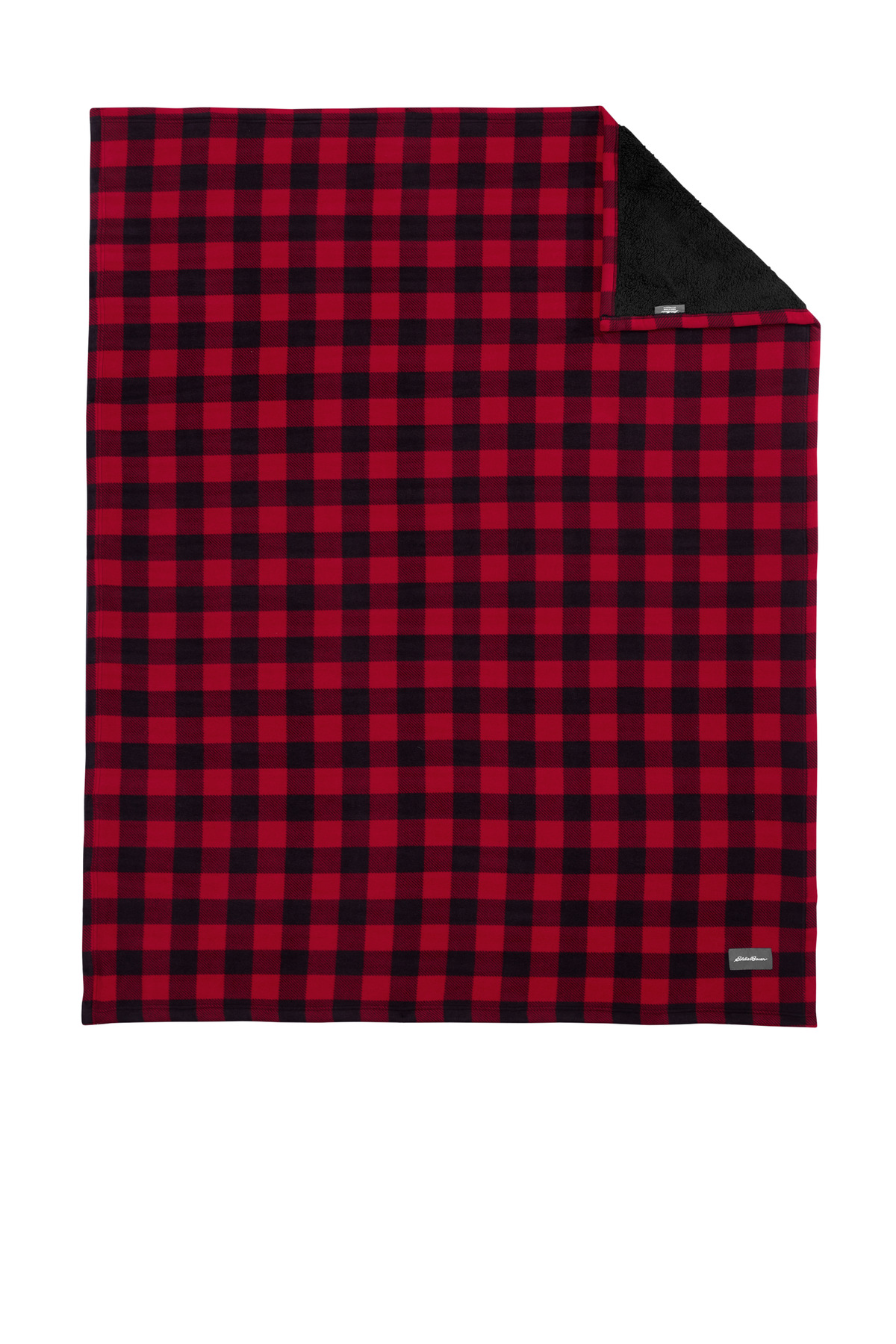 Rugged style meets soft warmth in this classic blanket thats ready for firesides and more. 18-ounce linear yard 100% polyester microfleece bonded to 100% polyester high-pile fleece Fully hemmed Eddie Bauer logo woven patch on bottom right corner Dimensions: 50 x 60