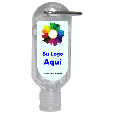 • Alcohol en gel de 60 ml con llavero carabinero con impresión full color FRA-031