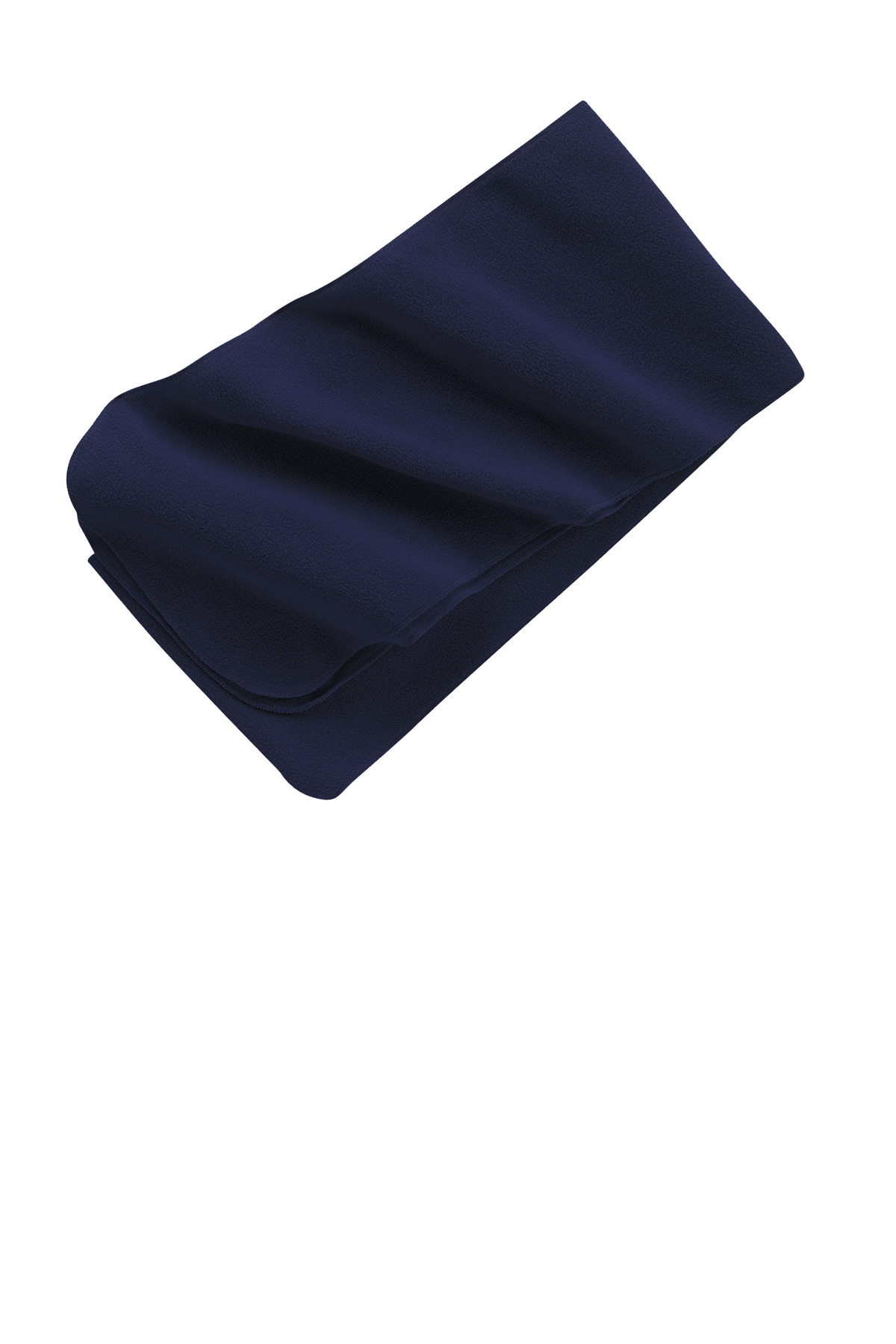 This soft and warm scarf offers extra coverage. 7.4-ounce 100% polyester fleece Anti-pill finish for lasting wear Dyed-to-match overlock stitch Dimensions: 80 x 10