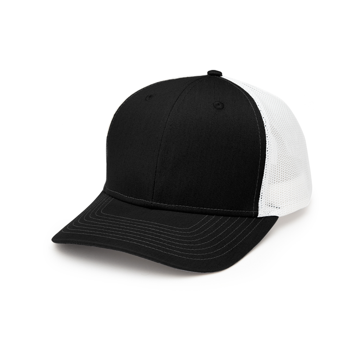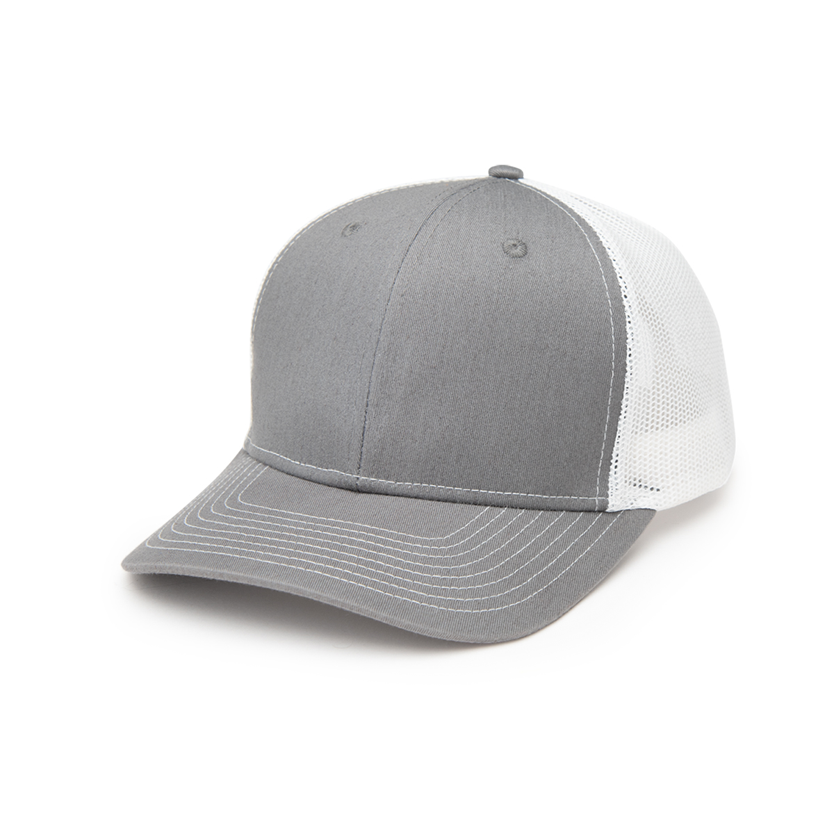 Classic Trucker Style | 60% Cotton/40% Polyester | 6 Panel, Medium Profile | Structured Crown & Pre-Curved Visor | Cotton Sweatband | Mesh Back With Adjustable Plastic Snap Tab Closure