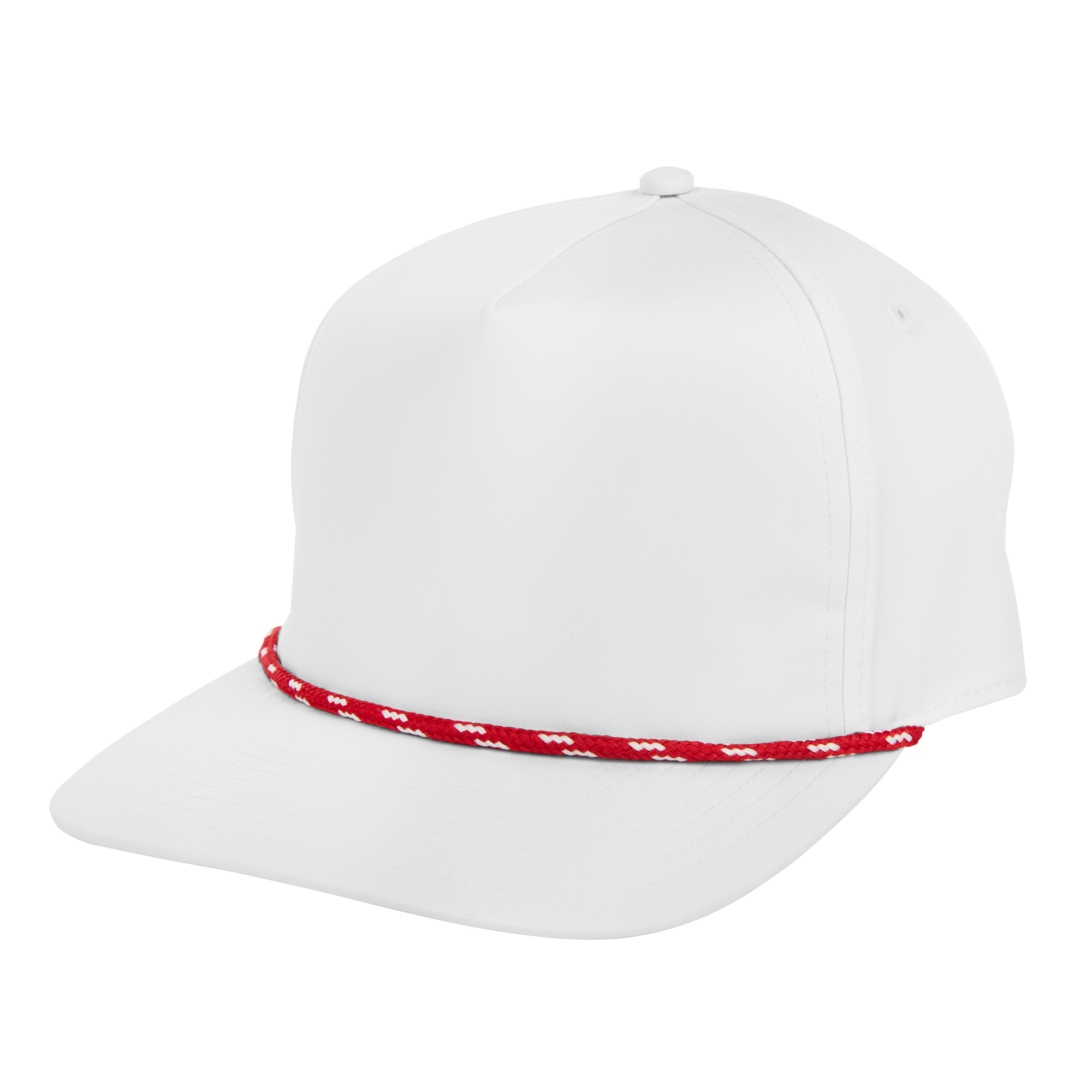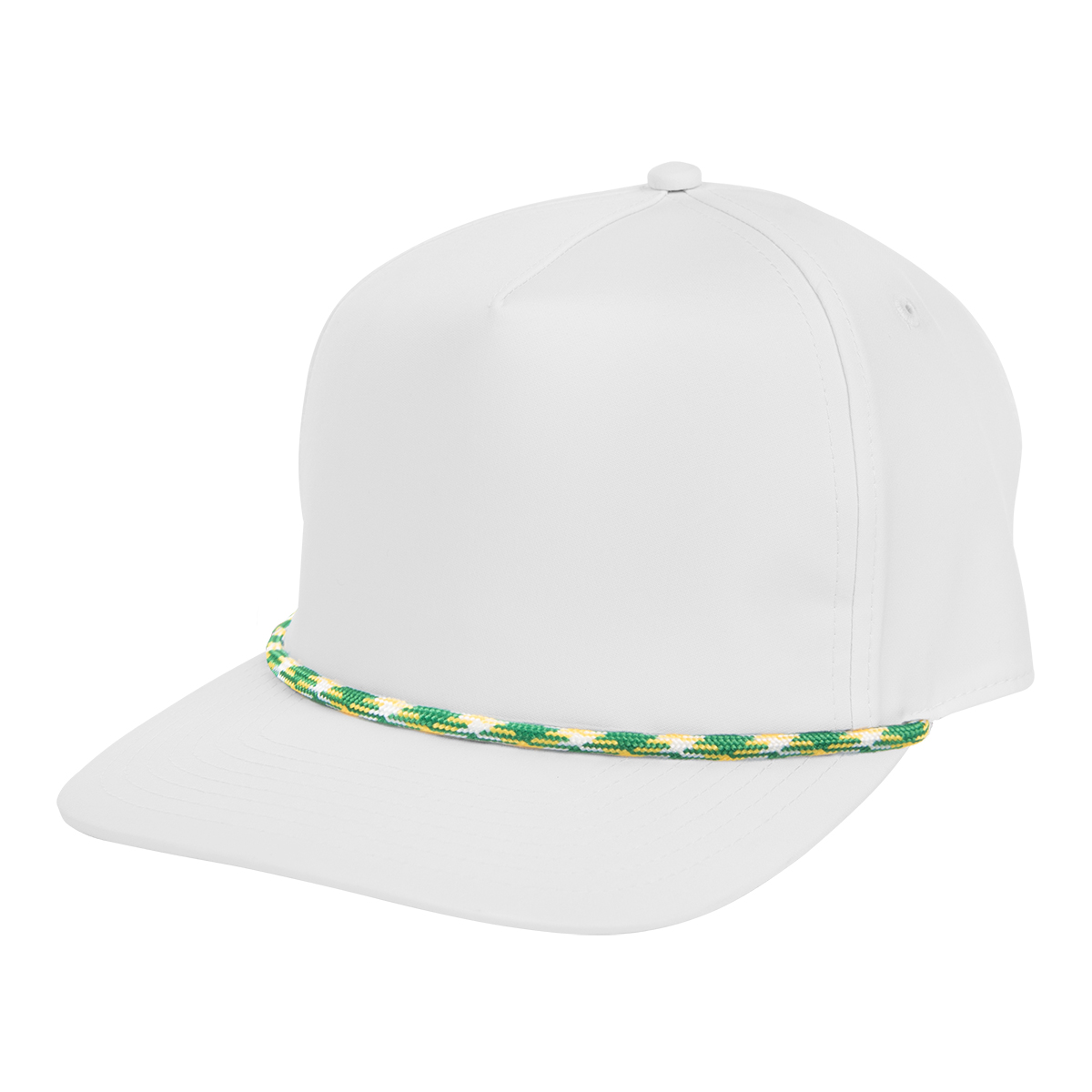 92% Performance Polyester, 8% Spandex | 5 Panel, Mid Profile | Adjustable Plastic Snap Tab Back Closure | Structured Crown & Pre-Curved Visor