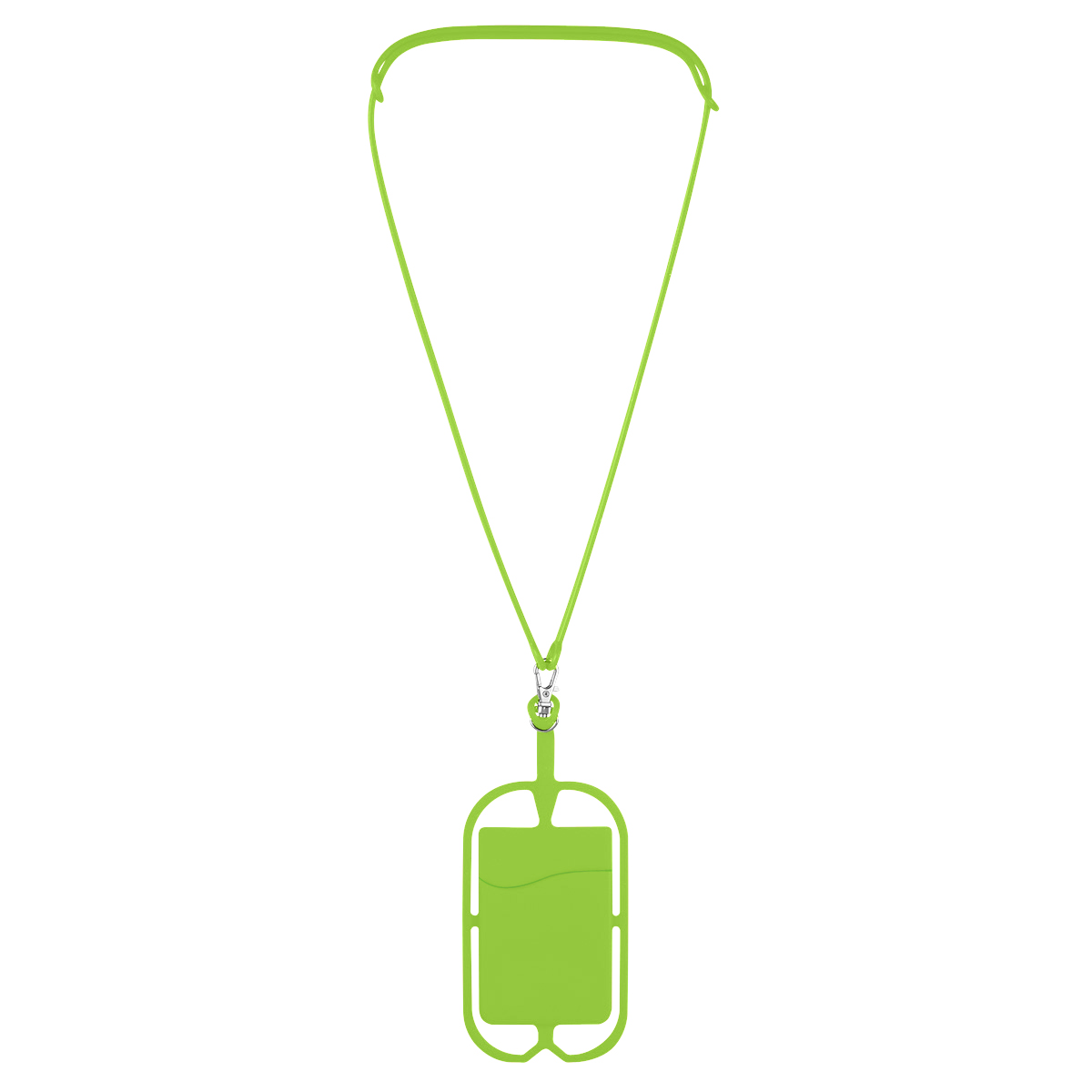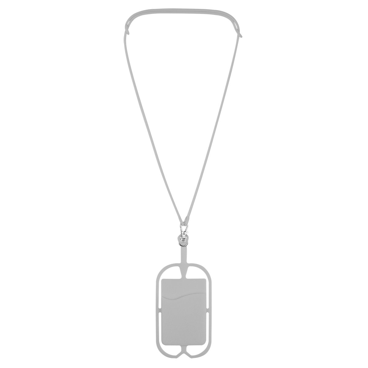 Silicone Material | 14" Lanyard With 7" Holder | Holder Wraps Around The Corners Of Your Phone | Holds A Variety Of Phone Sizes | No Need To Remove Your Case, Silicone Will Stretch Over Most Phone Cases | Perfect For Carrying Identification, Room Key, Cash Or Credit Card | Not Available Blank. Sold Exclusively For Promotional Use, Not For Retail Sales.
