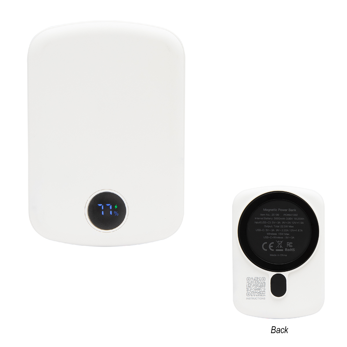Fast Charging Capability | Adheres Magnetically To The Back Of Your Device | Internal Magnets Help Properly Align Your Phone For Wireless Charging (iPhone® 12 & Newer) | Slim, Compact Profile | Digital Power Level Indicator | Over Current, Over Voltage, Over Charge And Over Discharge Protection | 5000 mAh Lithium Ion Battery