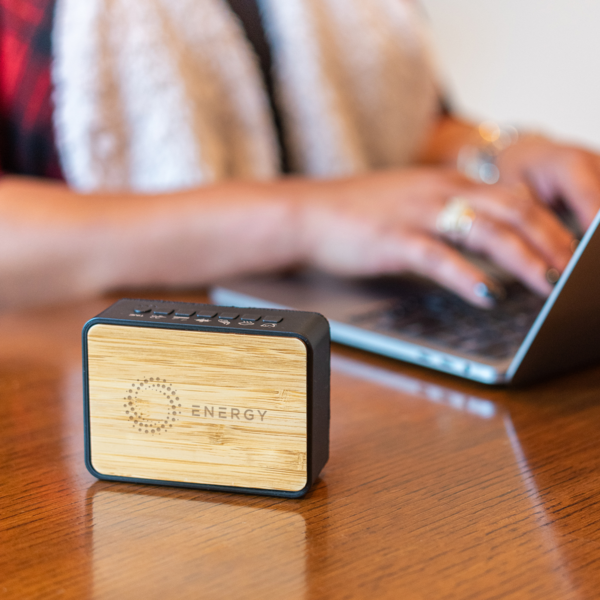 Made Of ABS With Bamboo Face | Includes 6 Soothing Sounds - Bird Chirps, Rainy Day, Fireside, White Noise, Ocean Waves And Windy Breeze | Features Time Span Options Or Continuous Play (Instructions Included) | Wireless Speaker Featuring High Definition Bluetooth® 5.3 Technology | Simply Pair With Your Device To Enjoy Dynamic Stereo Sound | LED Indicator Lights | 300 mAh Lithium Polymer Battery | Features A Micro-USB Input (Cord Included) | Pairs From Up To 30 Feet Away | Up To 2 Hours Of Play Time | The Bluetooth® word mark and logos are registered trademarks owned by the Bluetooth SIG, Inc. and any use of such marks by Hit Promotional Products, Inc. is under license. Other trademarks and trade names are those of their respective owners.