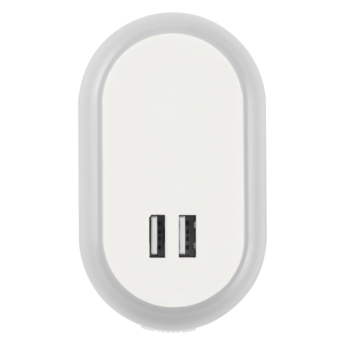 UL Listed (UL File #E490050, Model #98892) | Extra Bright White LED Light | Compact Design With Folding Prongs | Features Dual USB Output And A/C Input | Output: 5 Volts/2.1 Amp | Slide Switch To Turn On/Off | Charges Most Phones, MP3 Players And More! | Connect to Multiple USB Devices at Once! | Requires Your Phone’s Charging Cord To Charge Your Device