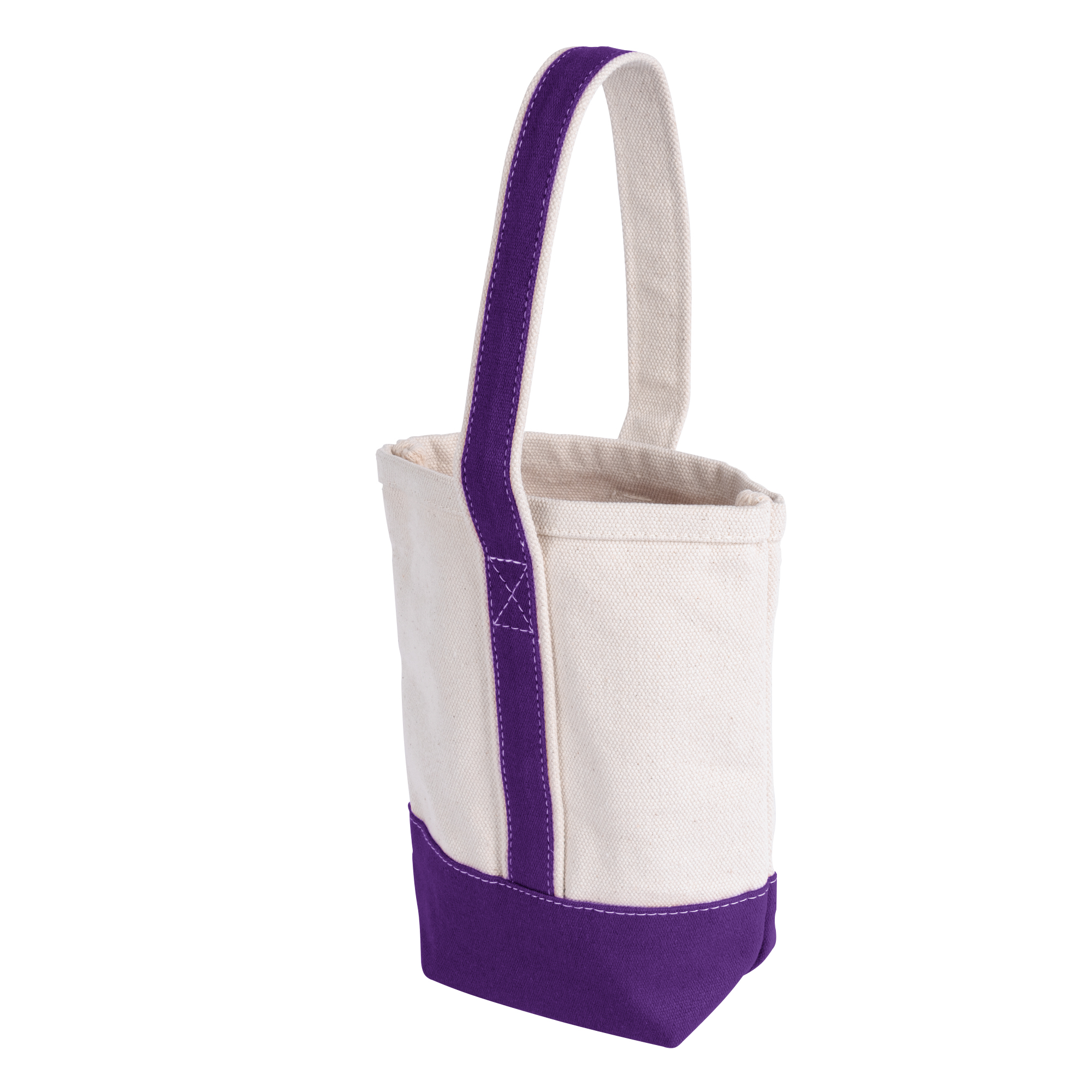 Made of 10 Oz. Cotton Canvas | Center Divider | Holds Two Standard 750 ml Wine Bottles | 13" Carrying Handle | 2 ½" Gusset | Spot Clean/Air Dry