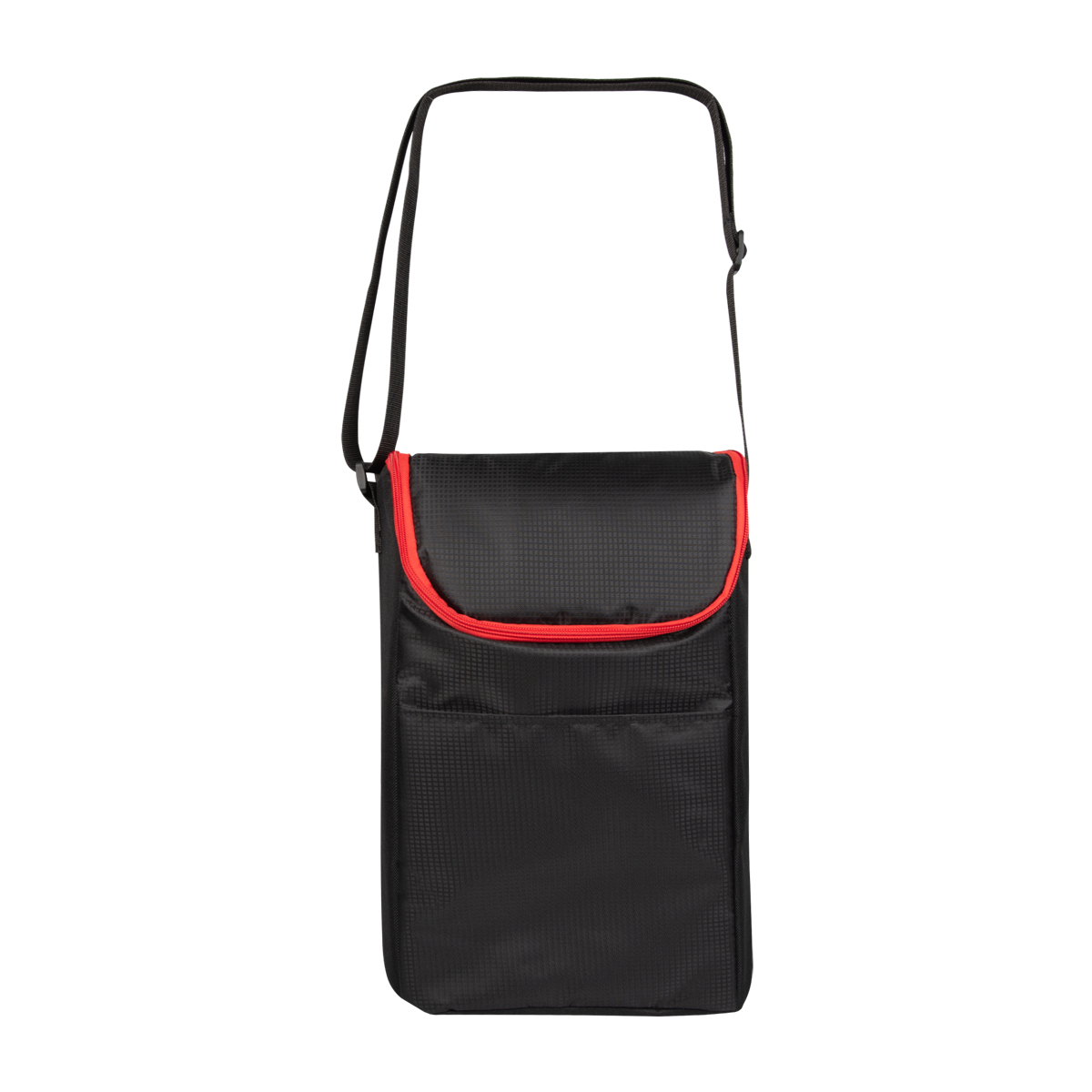 Made Of 600D Polyester | Gray PEVA Lining | Adjustable Shoulder Strap | Front Slip Pocket | Interior Divider Insert | 5 ½" Gusset | Holds 2 Standard Size Wine Bottles Or Two 2-Liter Bottles | Spot Clean/Air Dry