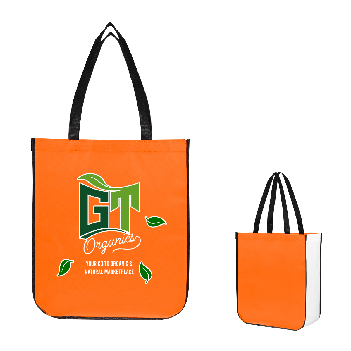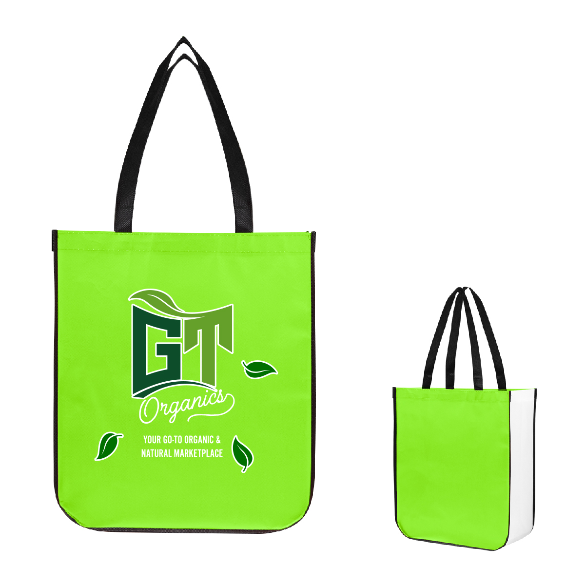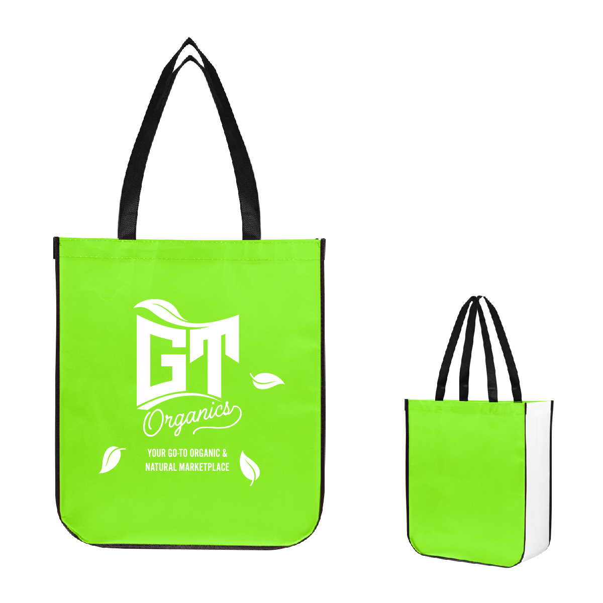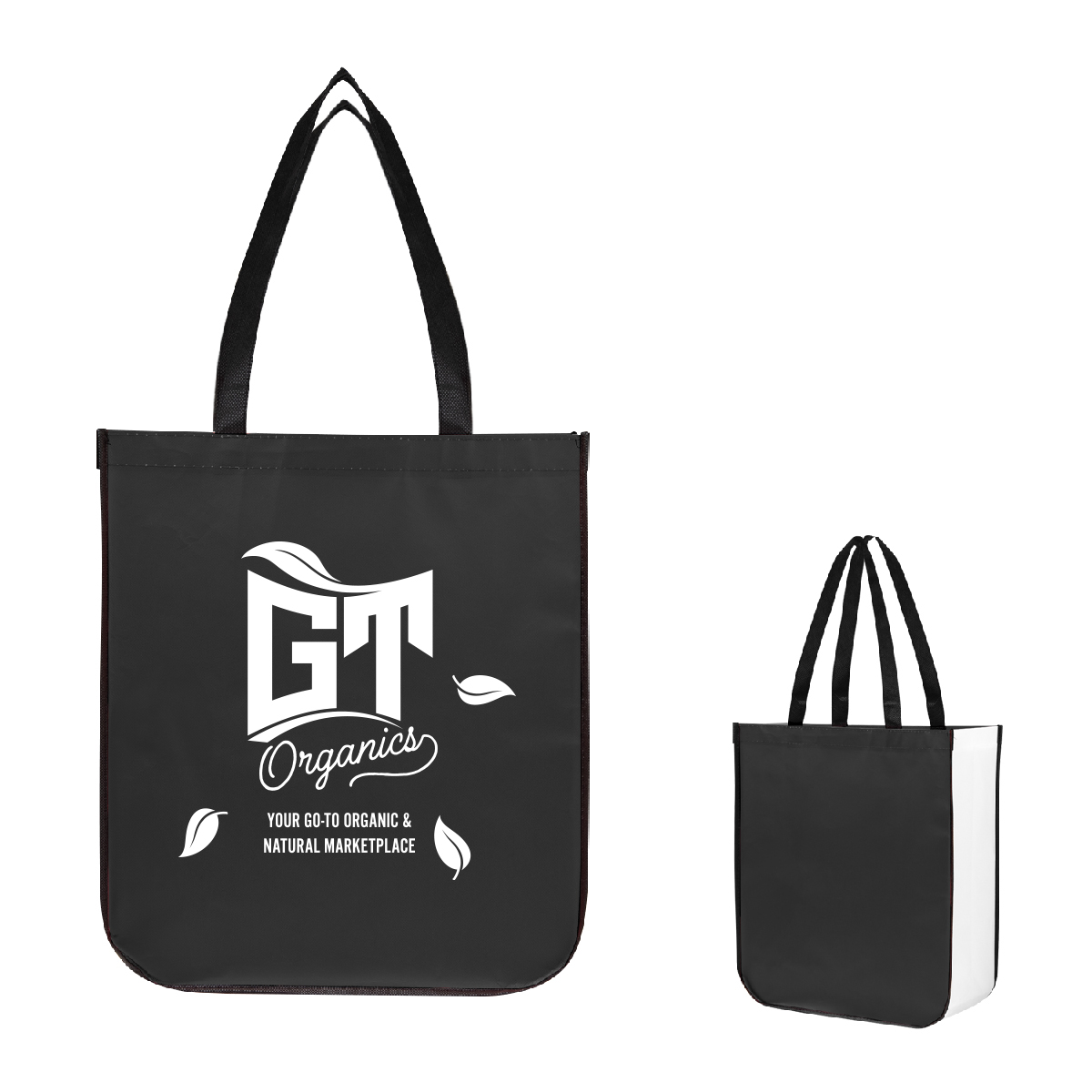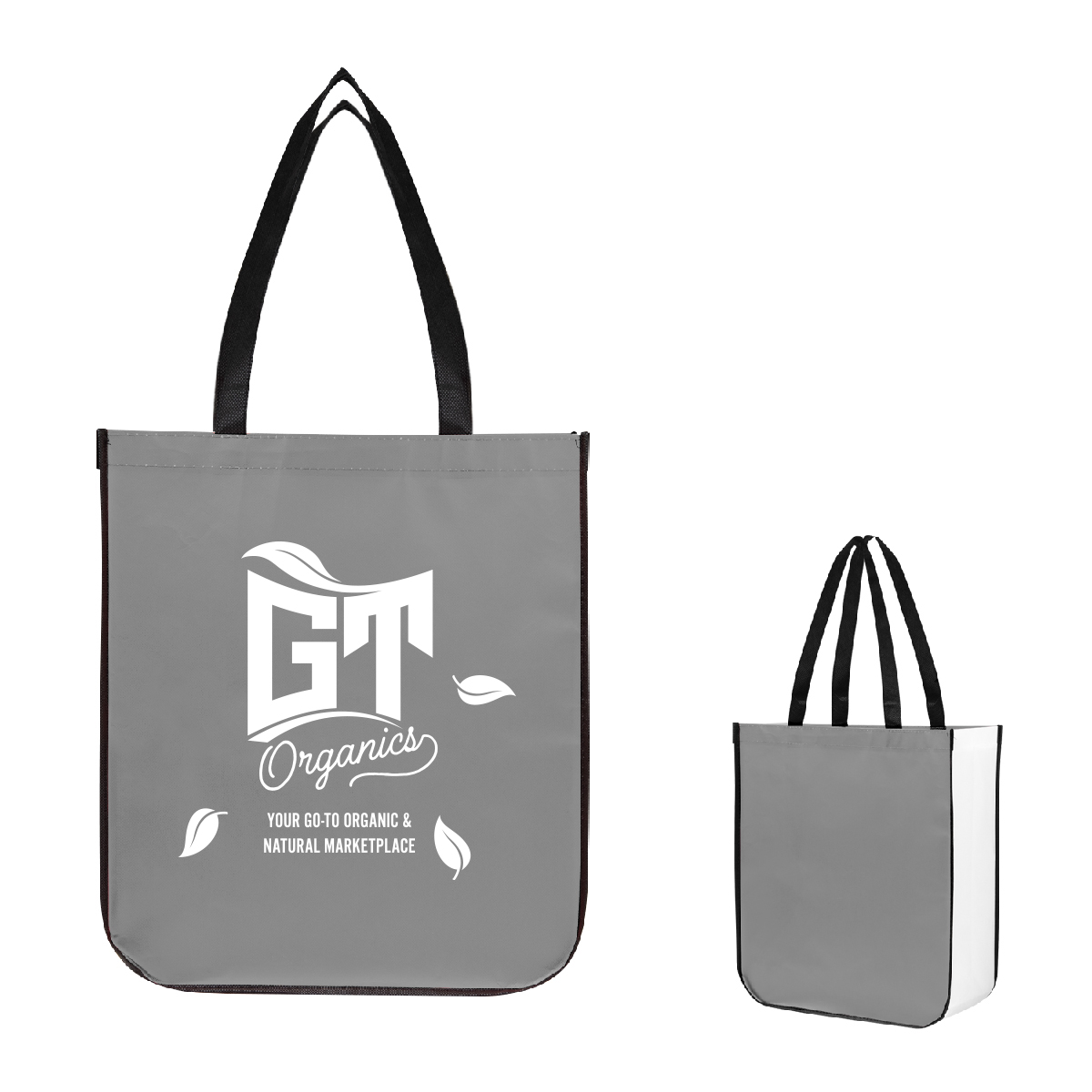 Made Of Combo: 80 Gram Non-Woven, Coated Water-Resistant Polypropylene And Laminated rPET | Made From Post Consumer Recycled Materials | Recycled Polyester (rPET) is Obtained By Melting Down Existing Plastic Bottles And Other Material Sources To Create New Polyester Fiber | Lamination Is Not rPET | 6 ½" Gusset | Reusable | 23 ½" Handles | Spot Clean/Air Dry