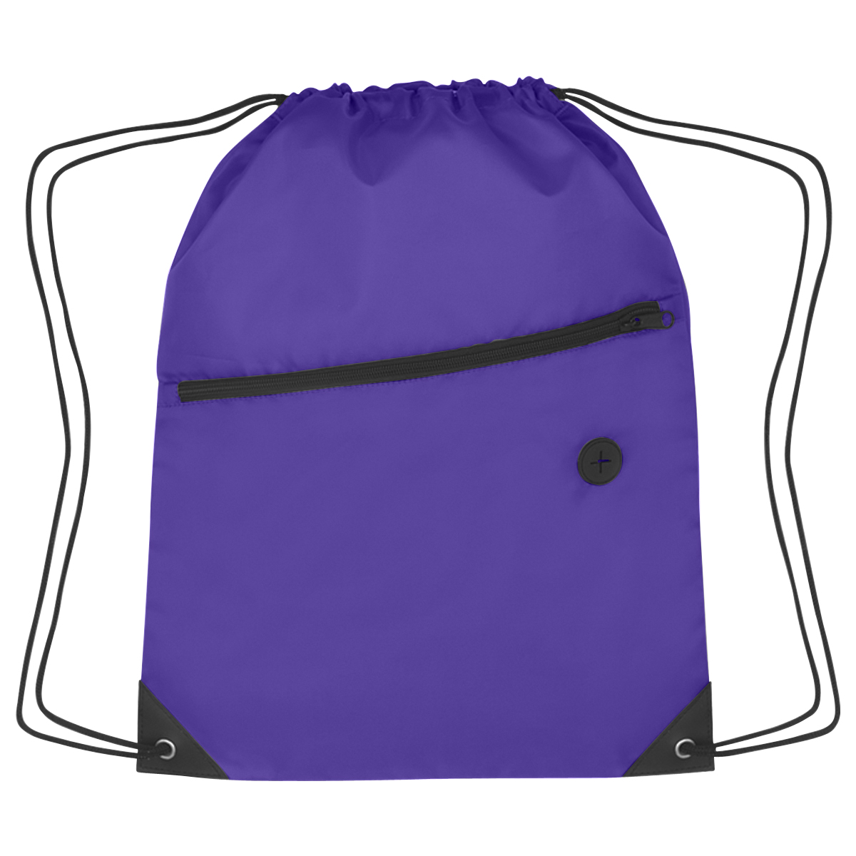 Made Of 210D Polyester | Large Front Zippered Pocket | Built-In Slot For Earbuds | Reinforced Eyelets | Drawstring Closure | Spot Clean/Air Dry