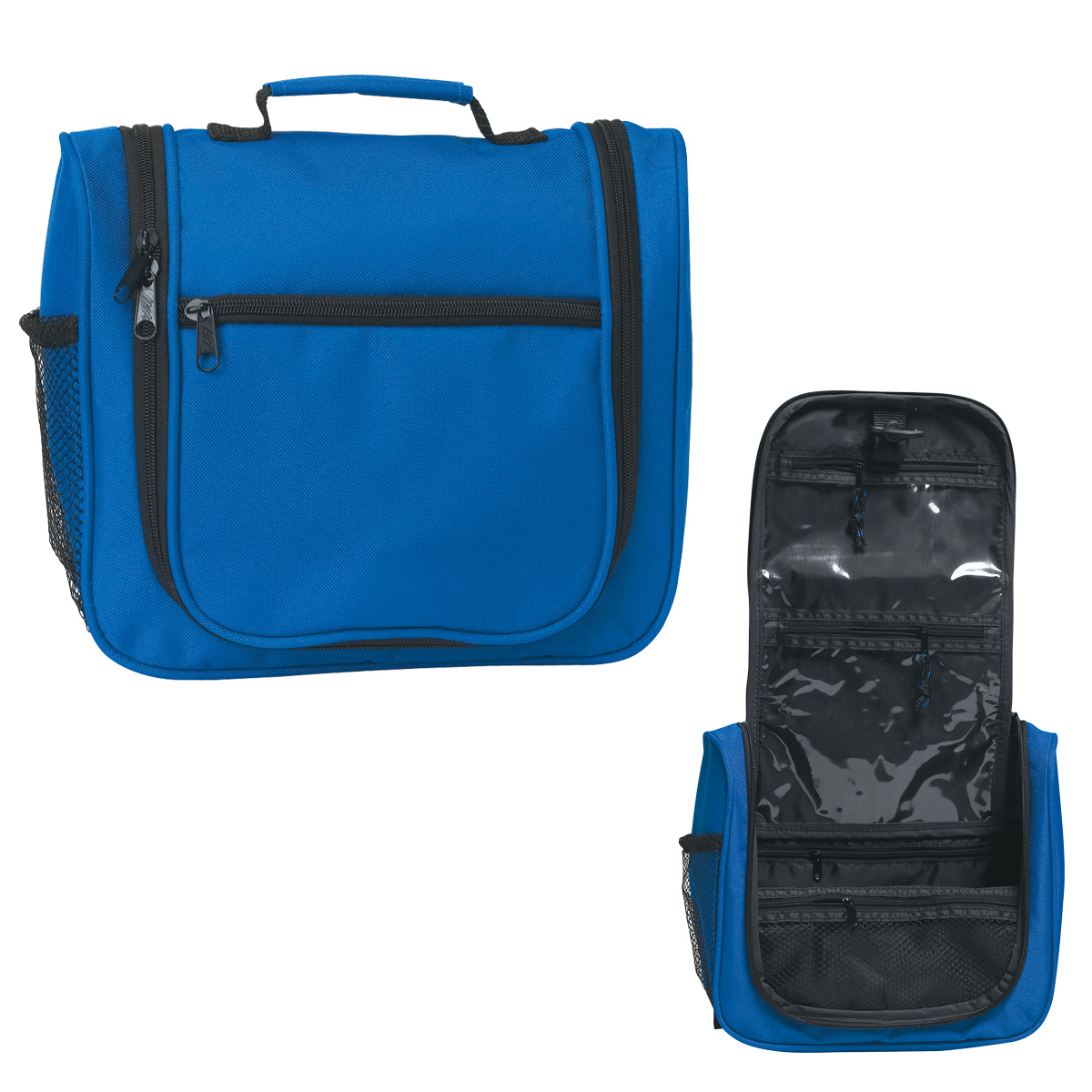 Made Of 600D Polyester | Folds Down To Compact Size | Inside Clear Plastic Zippered Compartments | Hang It Up For Easy Access, Easy To See Contents | Zippered Main Compartment | Large Front Zippered Pocket | Inside And Outside Mesh Pockets | Padded Web Handle For Easy Carrying | Spot Clean/Air Dry