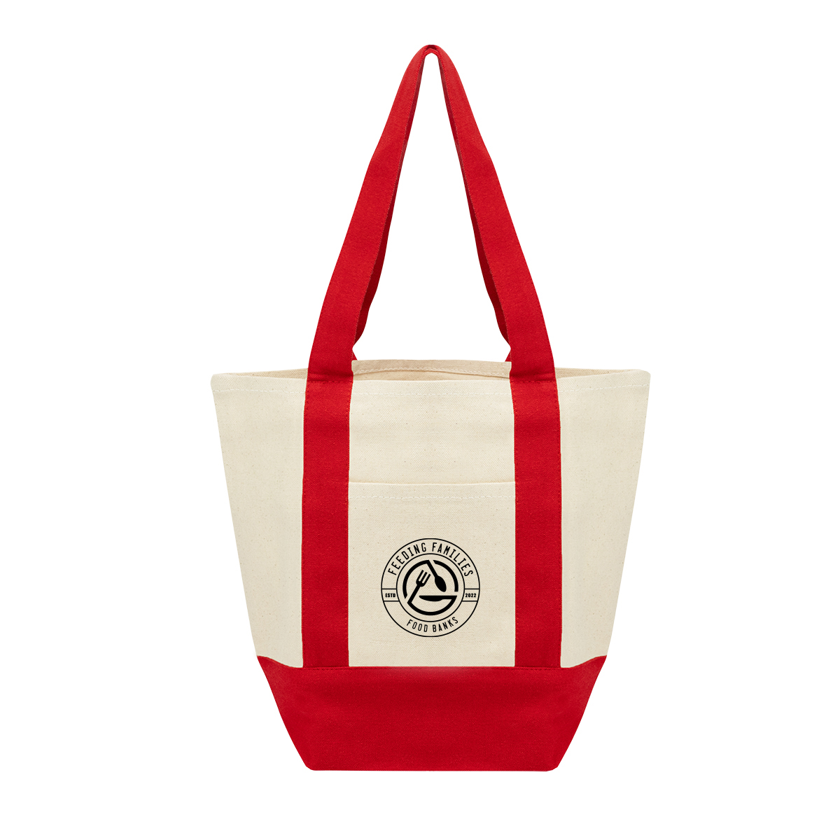 Made Of Combo: 10 Oz. 70% Recycled Cotton Canvas And 30% Polyester | Front Pocket | 18" Handles | Spot Clean/Air Dry