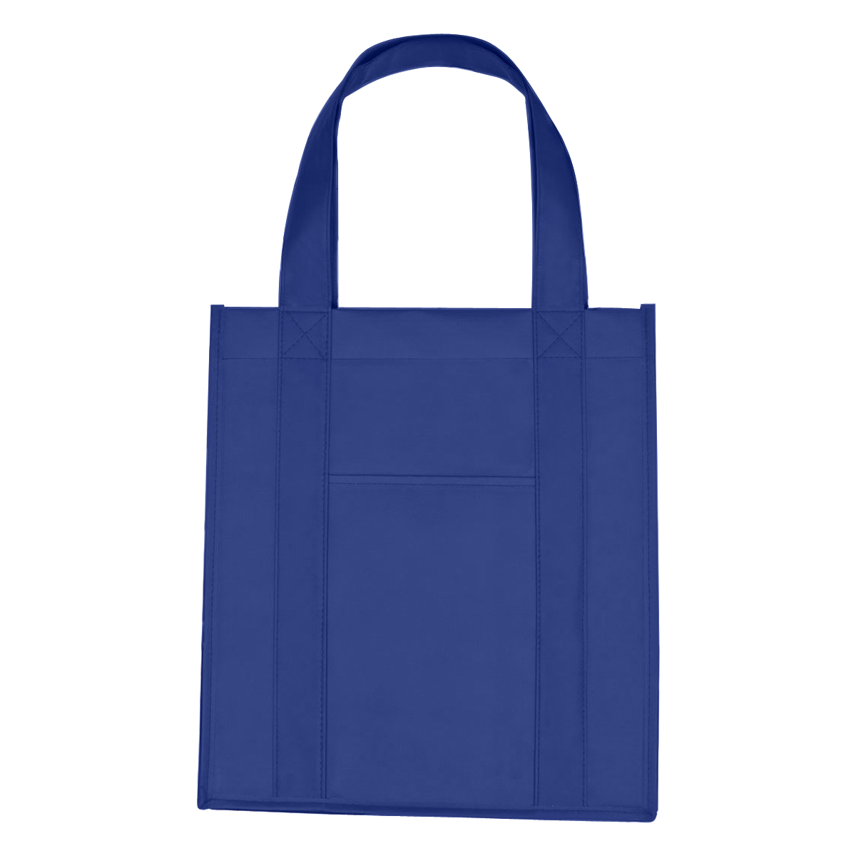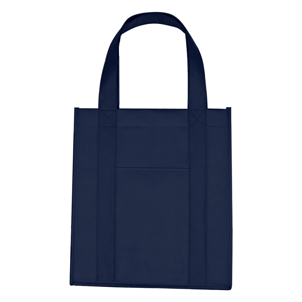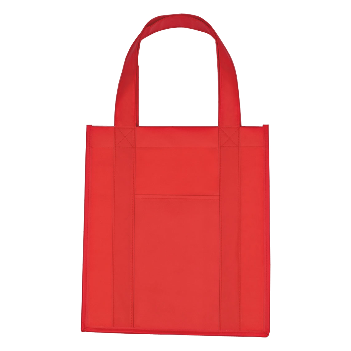 Made Of 80 Gram Laminated Non-Woven, Coated Water-Resistant Polypropylene | Front Pocket | Great For Grocery Stores, Markets, Book Stores, Etc. | 10" Gusset With Matching Covered Bottom Insert | Reusable | 20" Handles | Spot Clean/Air Dry
