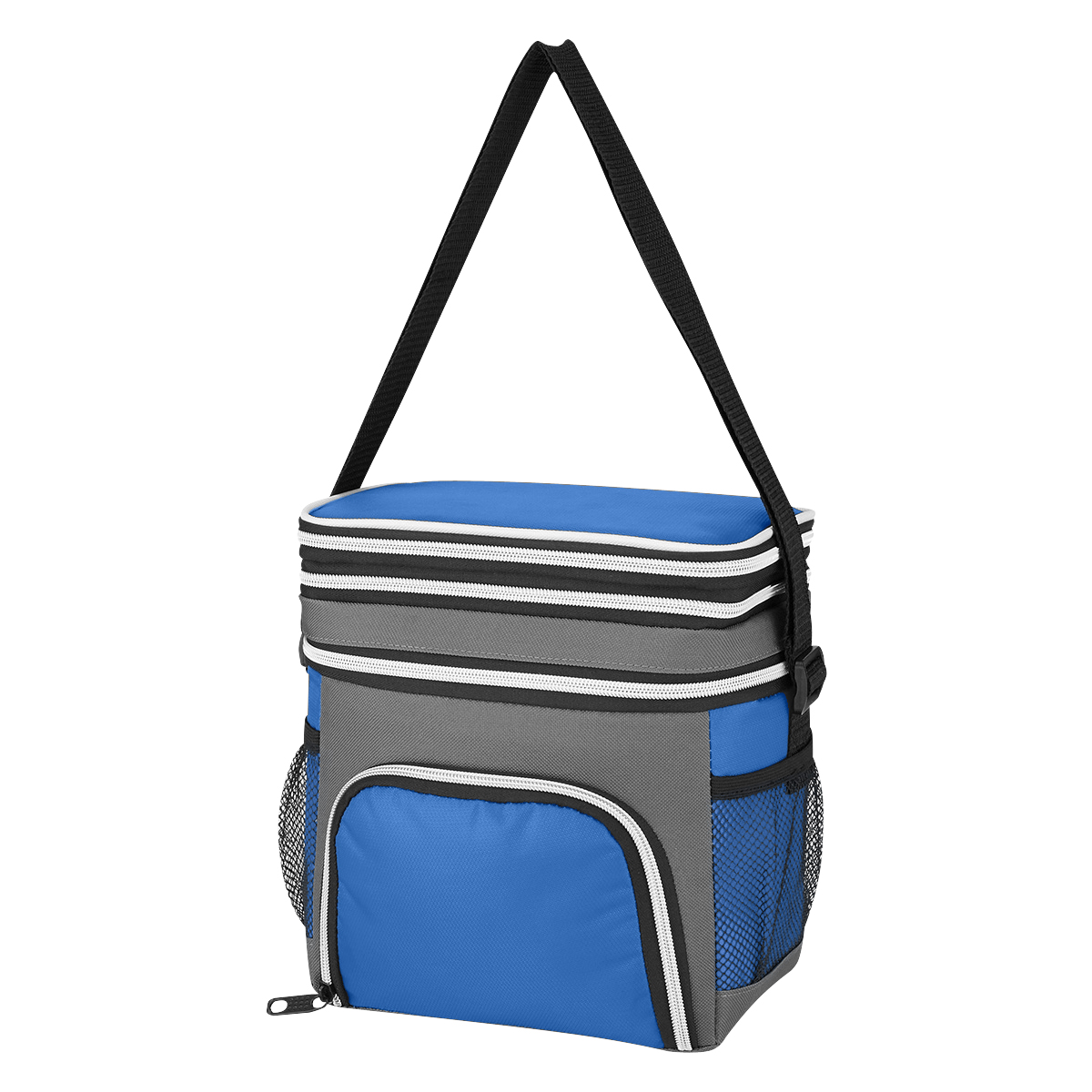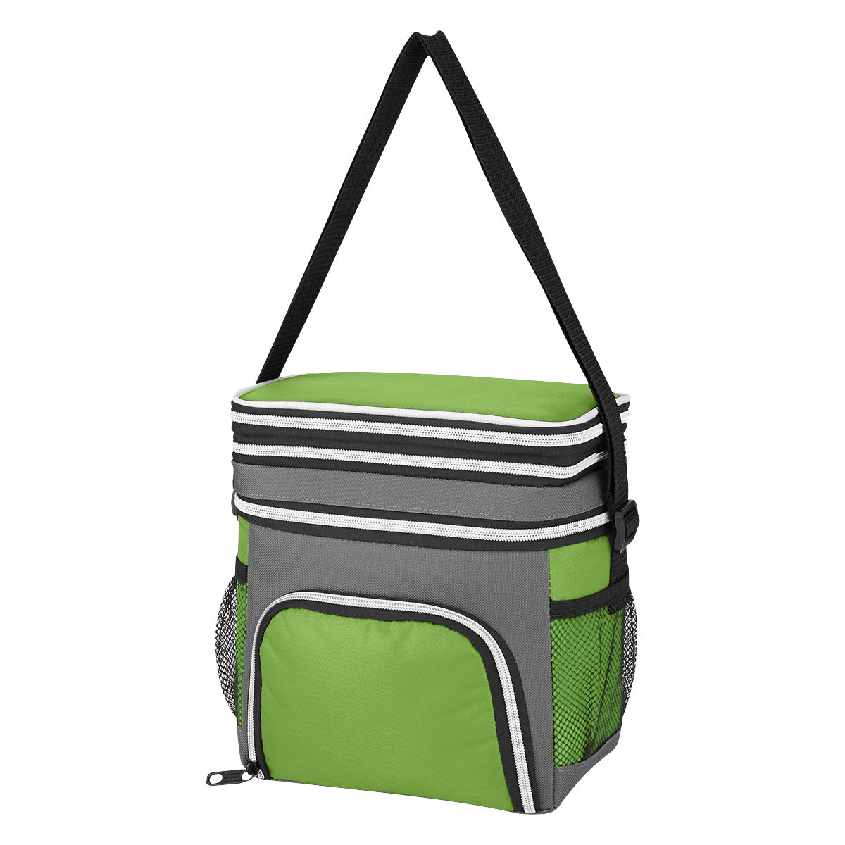 Made Of Combo: 600D Polyester And Polyester Jacquard | Gray PEVA Lining | Adjustable Shoulder Strap | Zippered Upper And Lower Compartments | Expansion Zipper Provides 2" Of Additional Space In Upper Compartment | Front Zippered Pocket | 2 Side Mesh Pockets | Holds Up To 6 Cans | Spot Clean/Air Dry