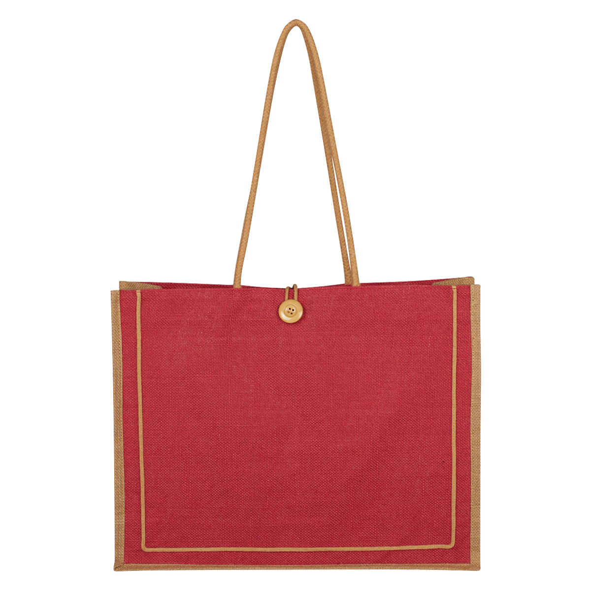 Made Of 100% Pure Natural Jute, A Natural Vegetable Fiber | 25" Cotton Cord Carrying Handles | Top Button Loop Closure | Colors Created With Azo-Free Dye | Spot Clean/Air Dry