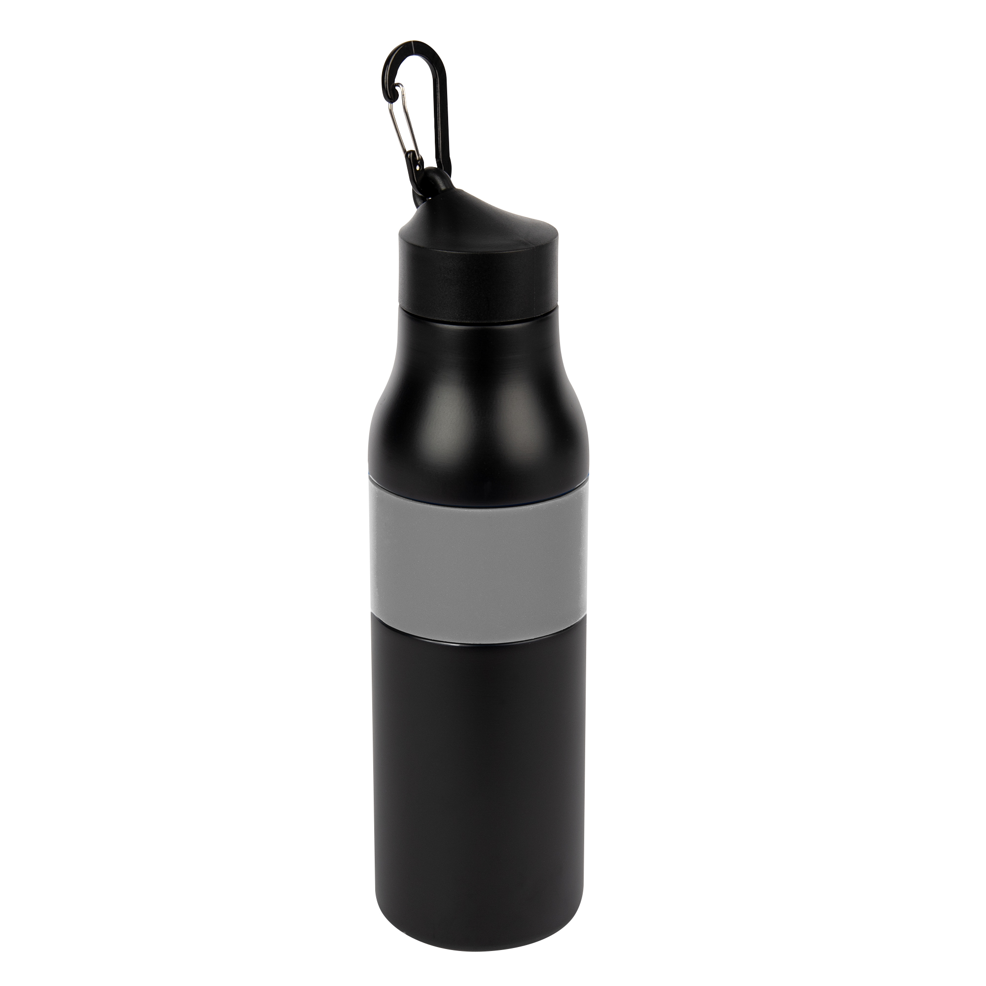 Stainless Steel Outer and Inner | Double Wall Construction For Insulation Of Hot Or Cold Liquids | Screw On, Spill-Resistant Lid With Carabiner Clip For Attachment | Silicone Band For Easy Comfort Grip | Meets FDA Requirements | BPA Free | Hand Wash Recommended