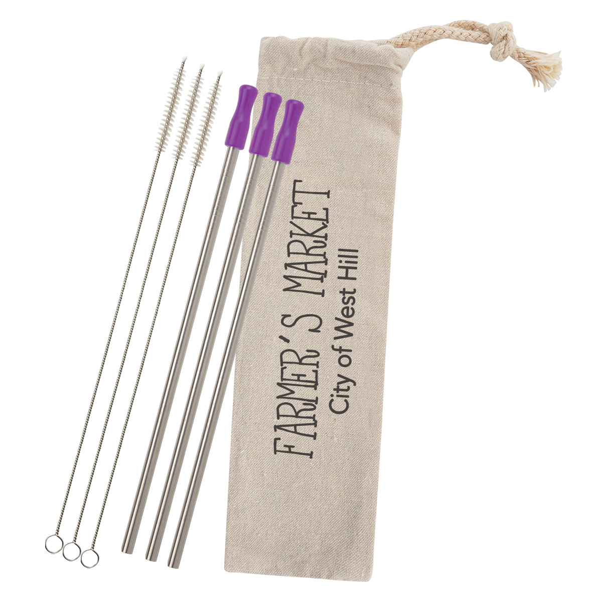 3-Pack Stainless Straw Kit with Cotton Pouch