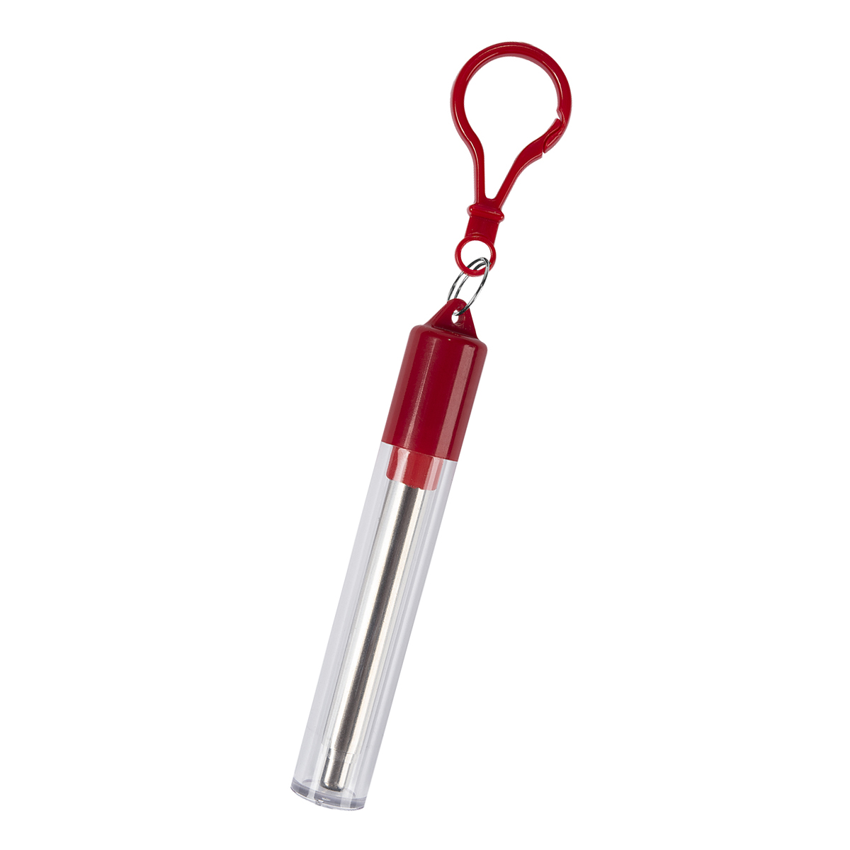 9" Stainless Steel Straw, Silicone Tip and Wire Cleaning Brush | 3 ¾" Brush Cleaner Fits Inside Stainless Straw For Easy Storage | Reusable | Protective Travel Case | Hand Wash Recommended | Carabiner Attachment