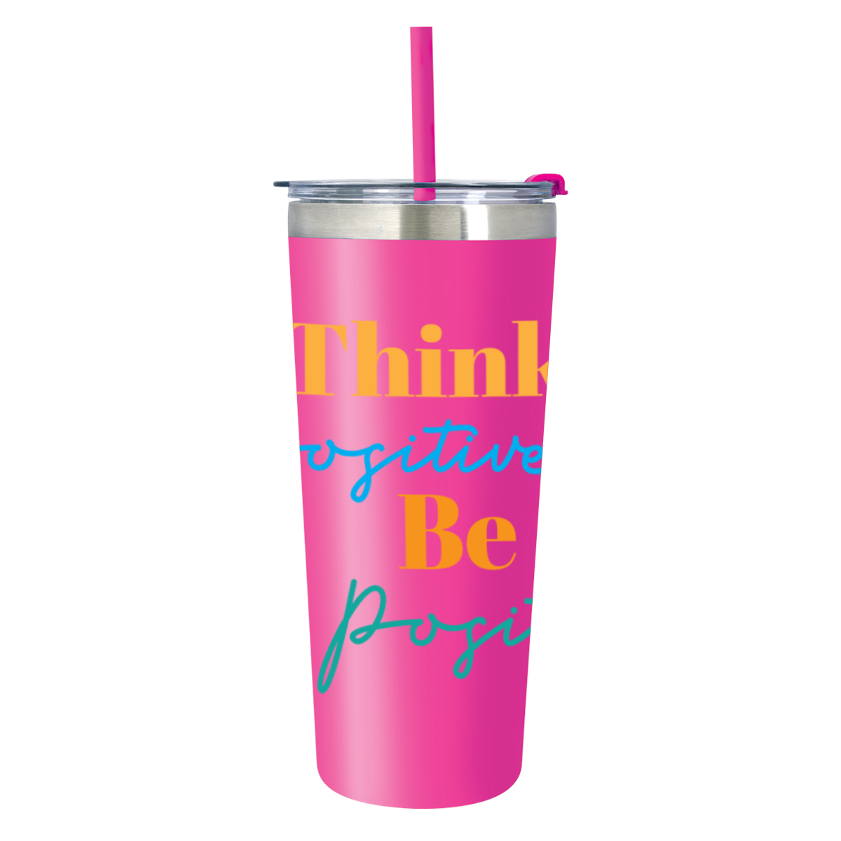 Stainless Steel Outer And Inner | Double Wall Construction For Insulation Of Hot Or Cold Liquids | Vacuum Insulated | Capacity Is 22 Oz. With Lid On | Snap-On, Spill-Resistant Flip Top Lid with Straw Hole And Matching 9 1/2" Straw | Non-Slip Bottom | Meets FDA Requirements | BPA Free | Hand Wash Recommended