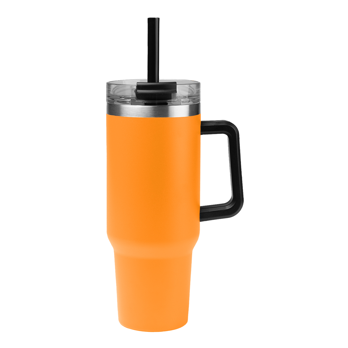 Stainless Steel Outer And Inner | Stainless Steel Tumbler With Handle | Powder Coated Finish | Double Wall Construction For Insulation Of Hot Or Cold Liquids | Keeps Drinks Cold Up To 24 Hours And Hot Up To 8 Hours | Screw On, Spill-Resistant Lid with Straw Hole and 12" Straw | Vacuum Insulated | Meets FDA Requirements | BPA Free | Hand Wash Recommended