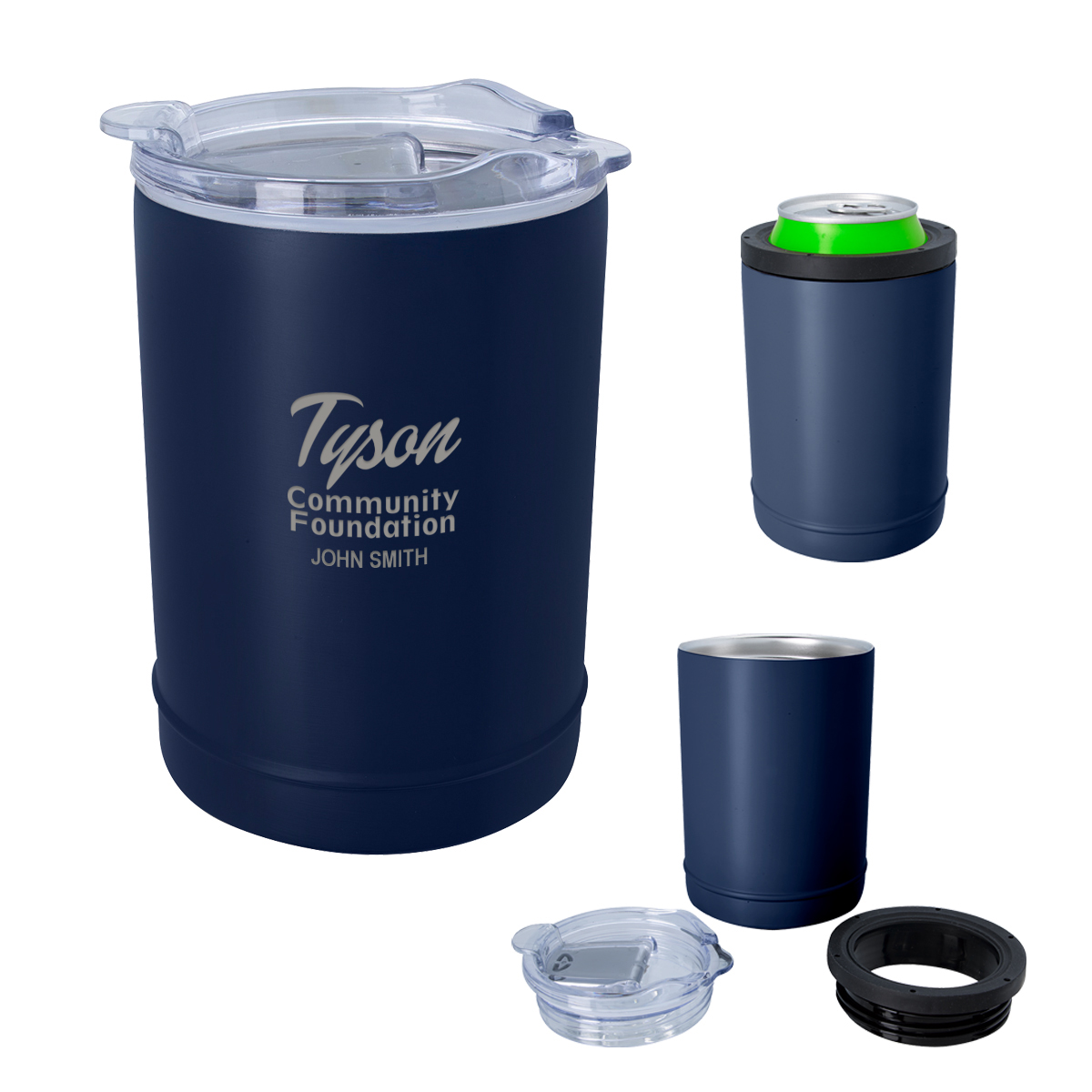Made Of Stainless Steel With Copper Plated Inner | Functions As A Tumbler And Can Cooler | Vacuum Insulated Sweat-Proof Design | Double Wall Construction For Insulation Of Hot Or Cold Beverages For Hours | Keeps Drinks Cold Up To 24 Hours And Hot Up To 6 Hours | Includes Screw On, Spill-Resistant Flip-Top Lid And Interchangeable Cooler Rim | Fits Most 12 Oz. Cans, Standard Bottles And Automotive Drink Holders | Replace the Cooler Rim With The Flip-Top Lid To Use As An 11 Oz. Tumbler | Meets FDA Requirements | BPA Free | Hand Wash Recommended