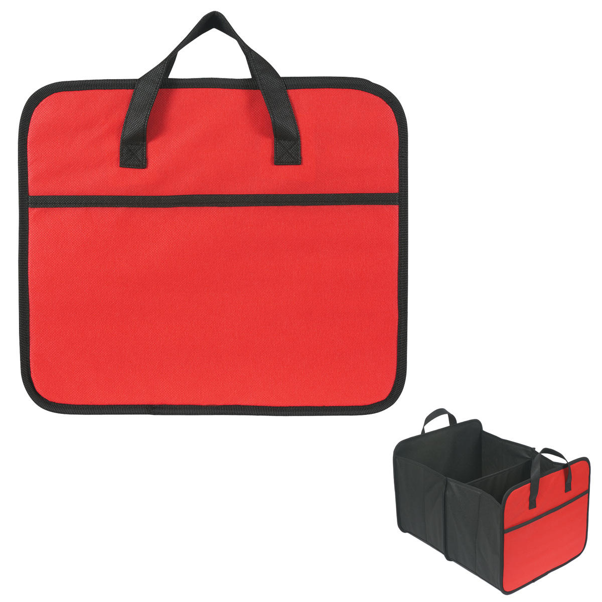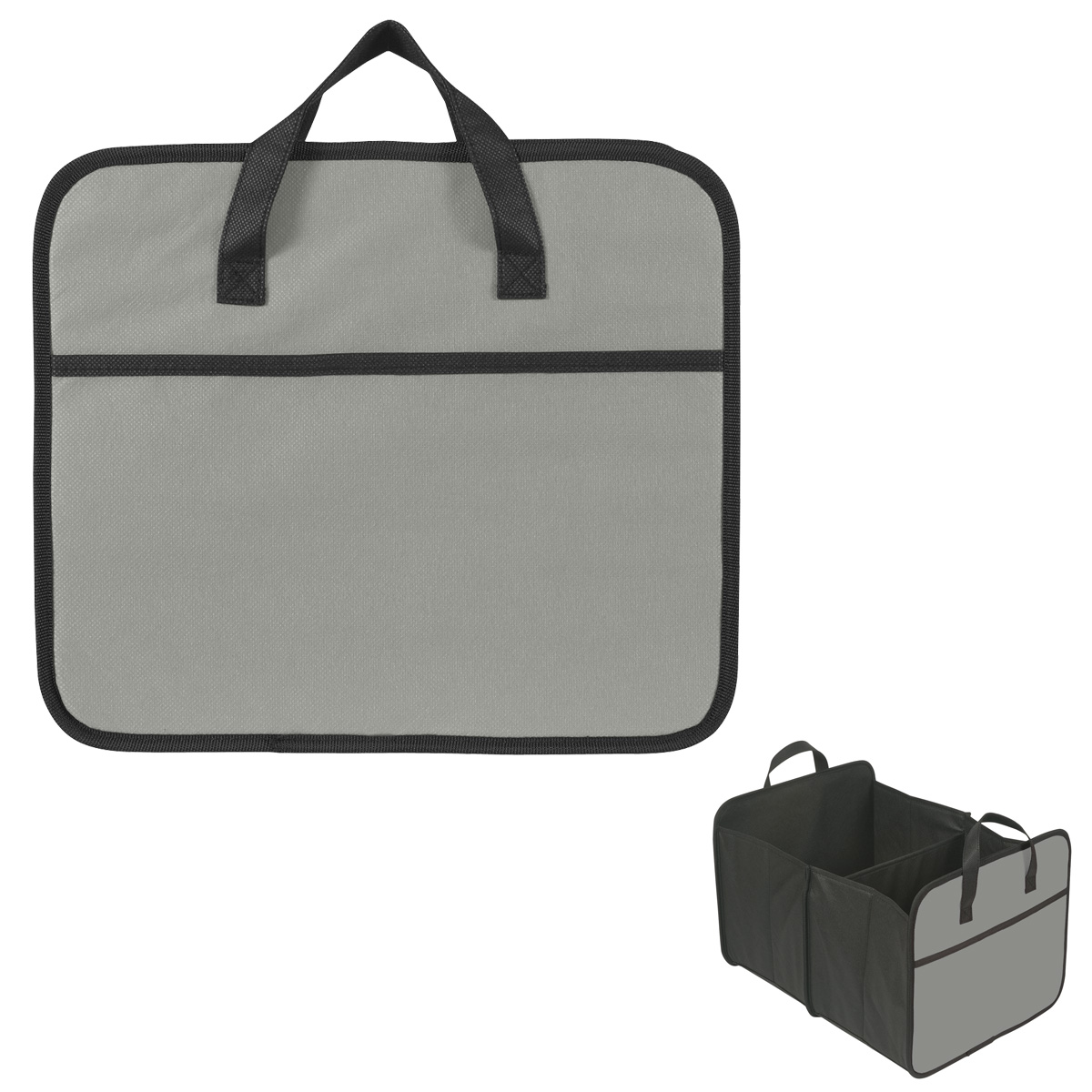 Made Of 80 Gram Non-Woven, Coated Water-Resistant Polypropylene | Cardboard And PE Foam Sides And Cardboard Bottom Gussets Help Keep Organizer Sturdy | 2 Large Compartments | Folds Flat When Not In Use | Front Pocket | 12" Carrying Handles | Spot Clean/Air Dry