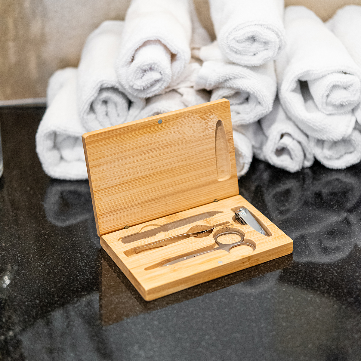 4 Piece Manicure Set In Bamboo Case