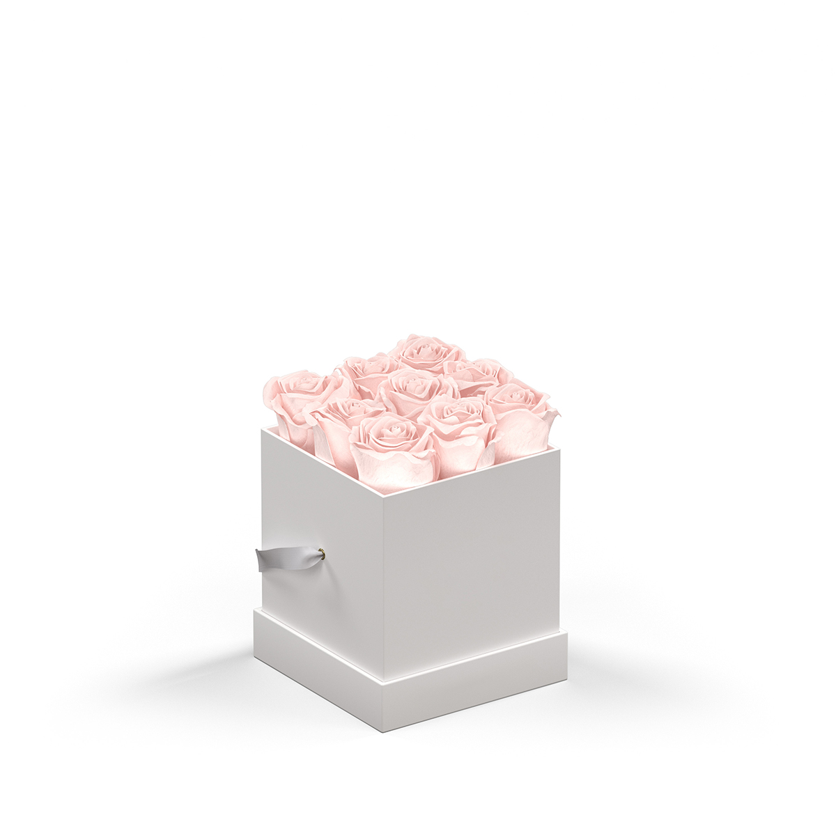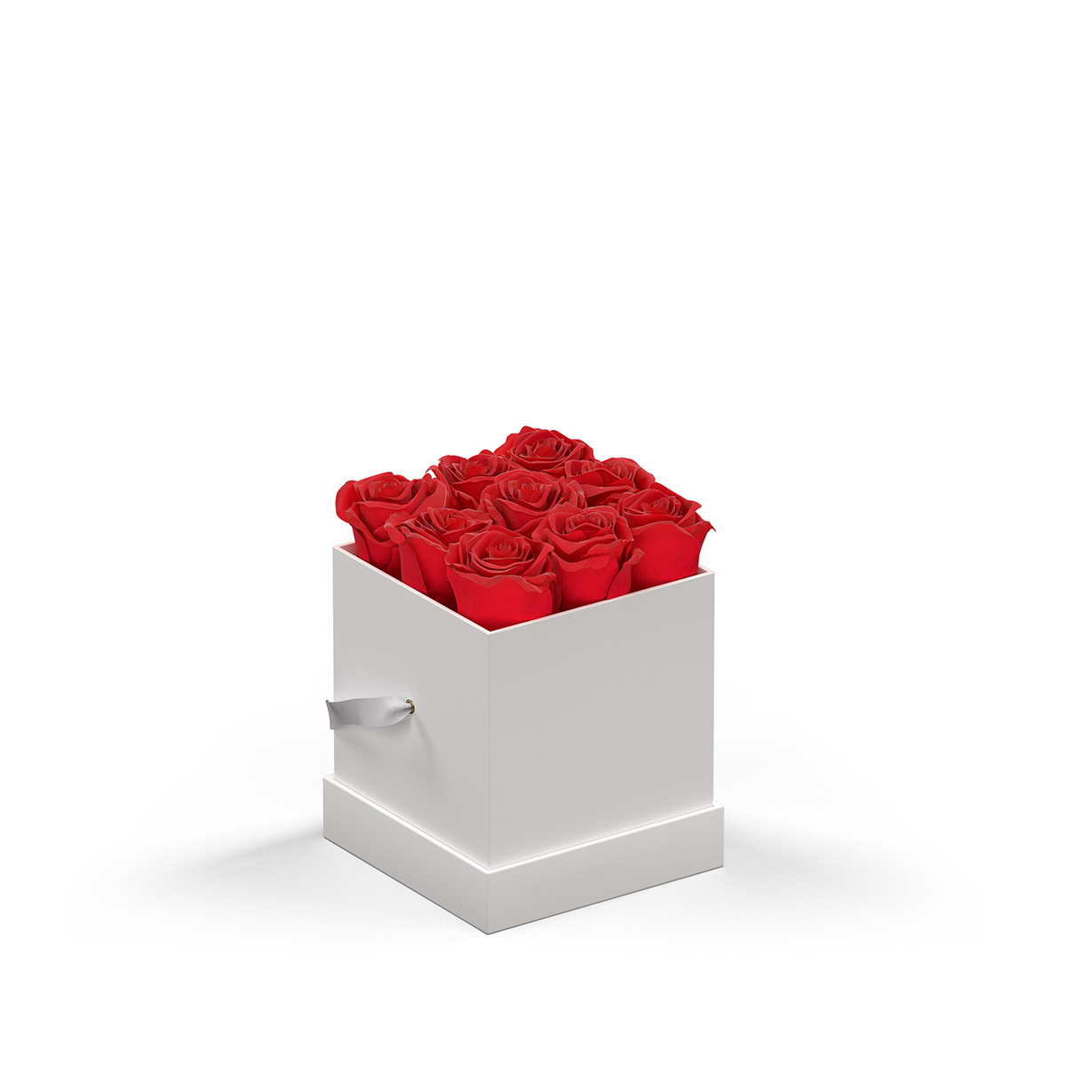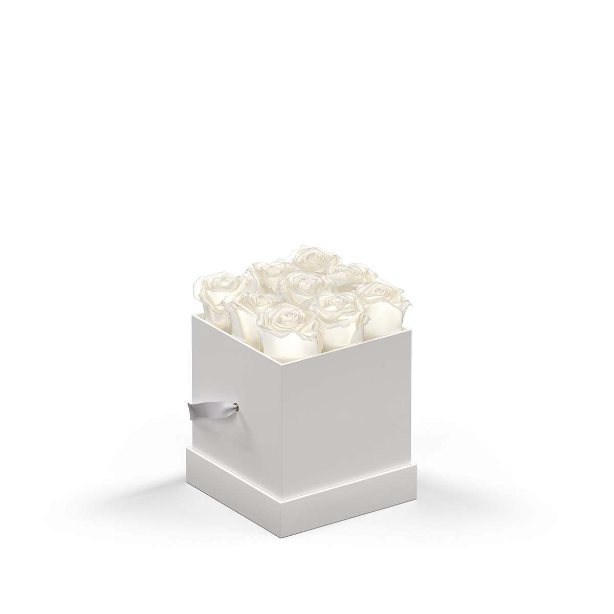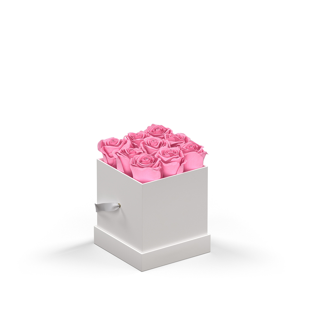 Choice of Rose Colors: Blush, Lavender, Pink, Red Or White | Arrangements Feature 9 Stunning Mini Eternity® Roses, Set In A Classic Parisian-Inspired Square Hat Box | Ideal Arrangements For Elevating Any Small Space, And Serve As Perfect Gifts