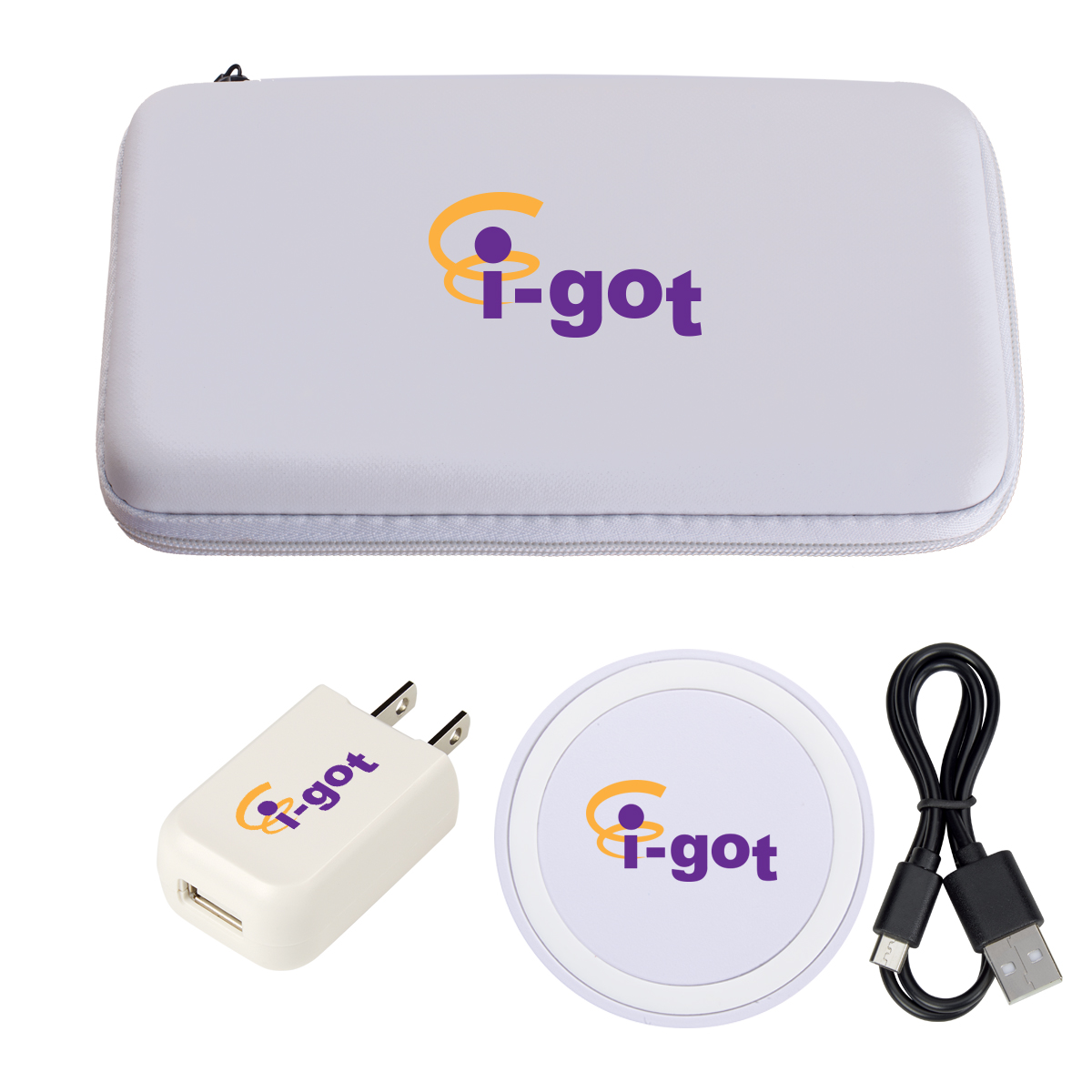 Kit Includes #2893 Wireless Phone Charging Pad, #2823 UL Listed Rectangular USB/AC Adapter and #2811 Zippered Travel Case | Pricing Includes a 1-Color Imprint in 1-Location on Each Item