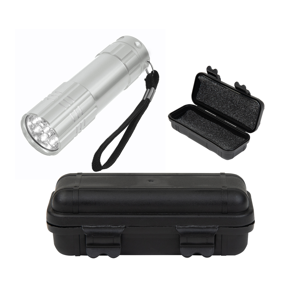 Set Includes #2509 Aluminum LED Flashlight and #80020 Hard Case With Foam – Small | Pricing Includes Laser Engraved Imprint on #2509 Aluminum LED Flashlight and 1 Color/1 Location Imprint on #80020 Hard Case With Foam Lining – Small