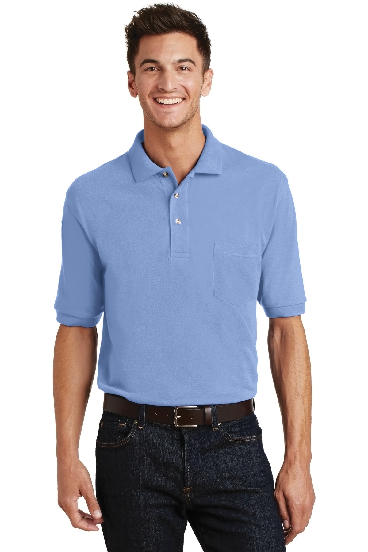 We garment washed our pique knit polo for softness and added a left chest pocket for pens and more.7-ounce 100% ring spun combed cotton Double-needle stitching throughout Flat knit collar and cuffs Locker patch Horn-tone buttons Side vents
