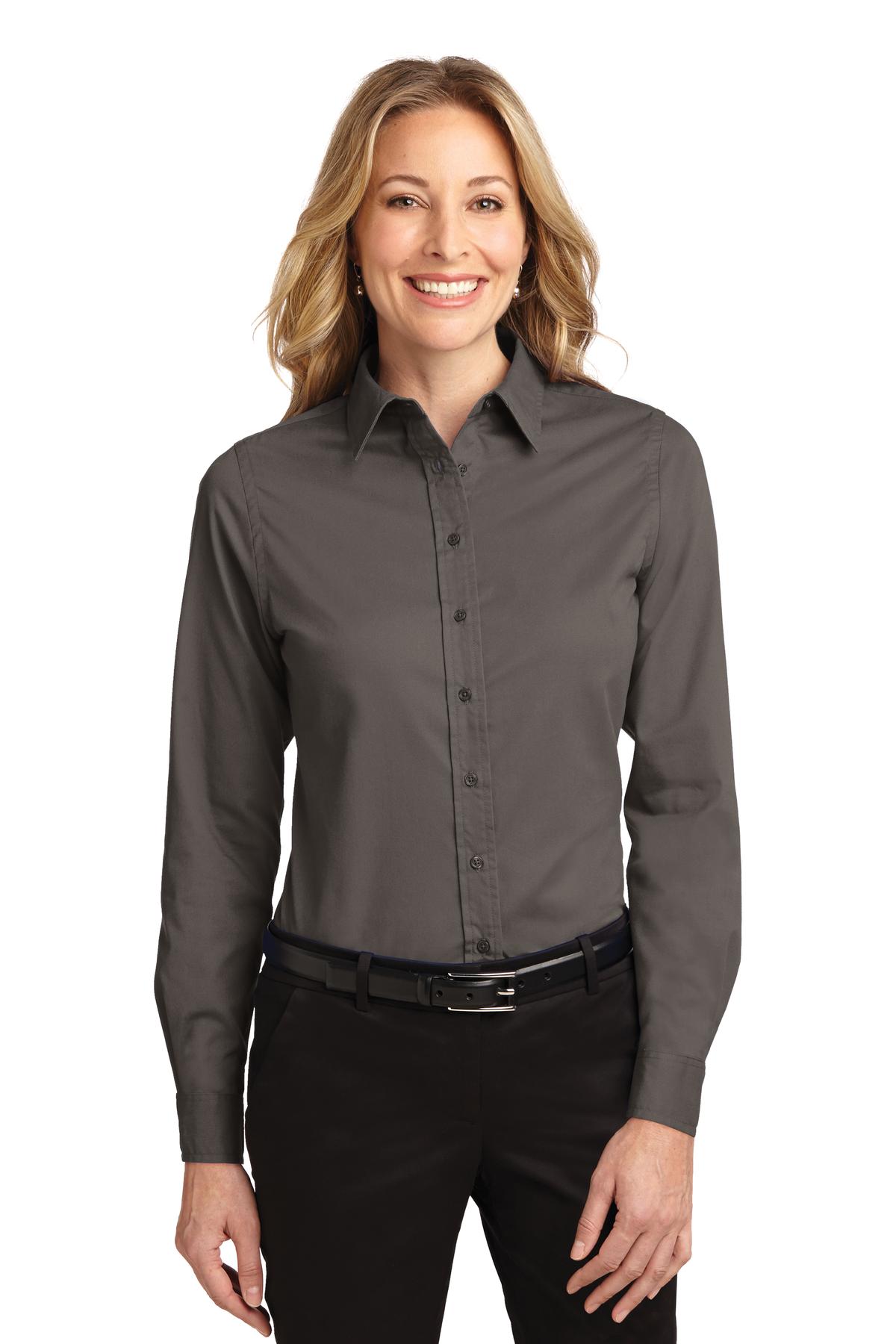 This comfortable wash-and-wear shirt is indispensable for the workday. Wrinkle resistance makes this shirt a cut above the competition so you and your staff can be too. 4.5-ounce 55/45 cotton/poly Traditional relaxed look Open collar Dyed-to-match buttons Adjustable cuffs White Athletic Gold Texas Orange Red Burgundy Coffee Bean Light Blue Navy Classic Navy Steel Grey Purple and Black have a Light Stone contrast neckband. Light Stone and Royal have a Classic Navy contrast neckband. Dark Green has a Navy contrast neckband.