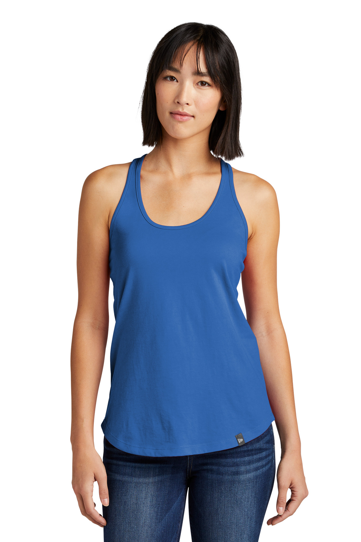 A quintessential racerback tank that can layer easily or stand on its own. 4.4-ounce 60/40 ring spun combed cotton/poly 30 singles Heat transfer label for tag-free comfort Contrast binding at neck and arm openings (Twists) Woven New Era badge at hem