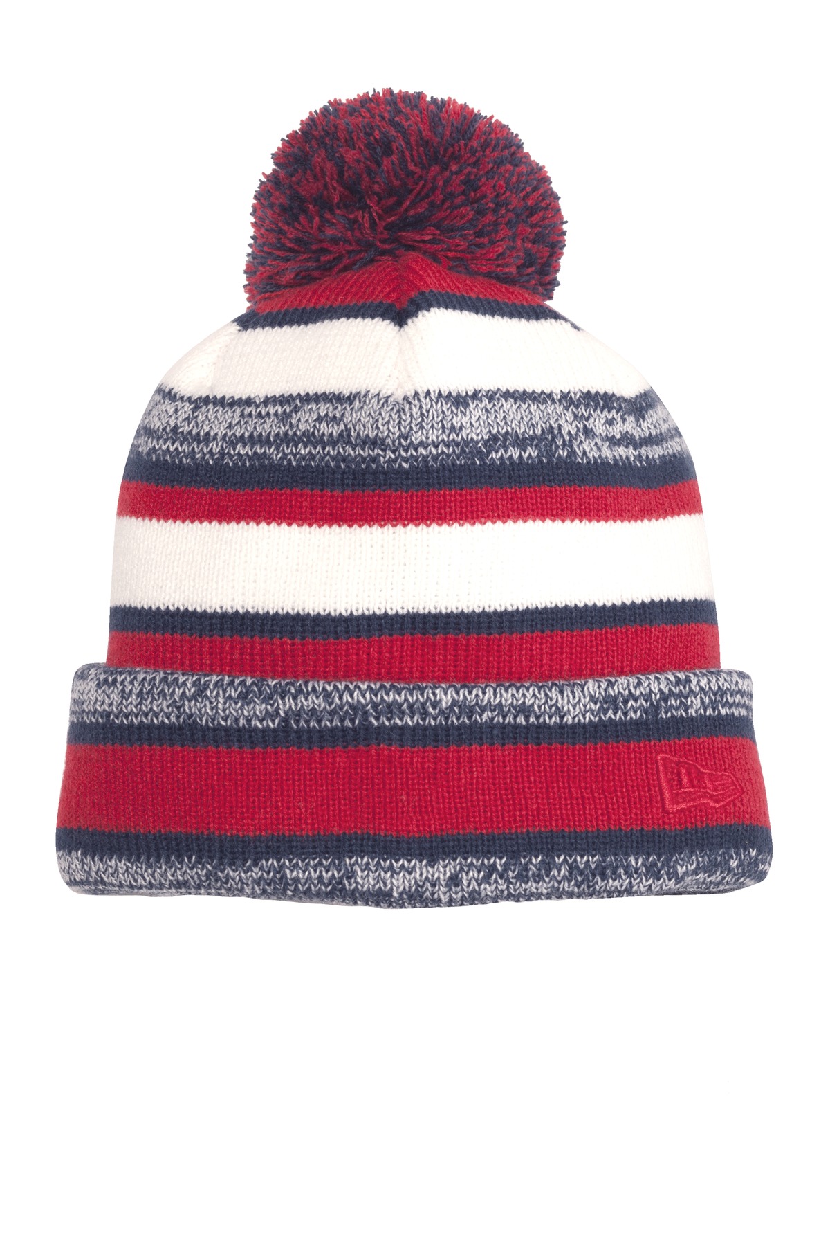 With its heather stripes dual-colored pom and warm fleece lining this is the beanie frequently spotted on pro football players and fans. A tonal embroidered New Era flag adds subtle character. Fabric: 100% acrylic shell 100% polyester fleece liningNew Era products may not be resold without embellishment.