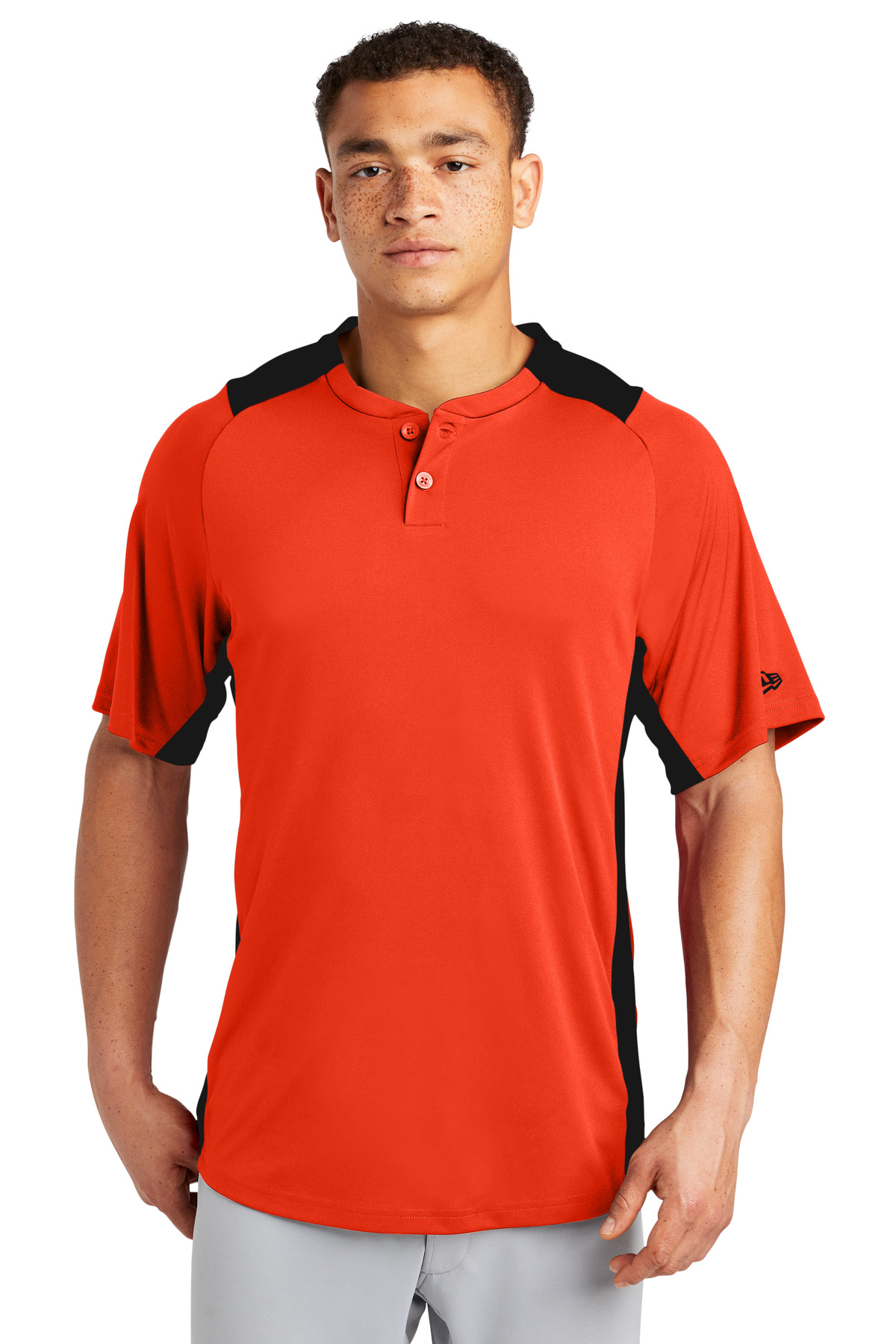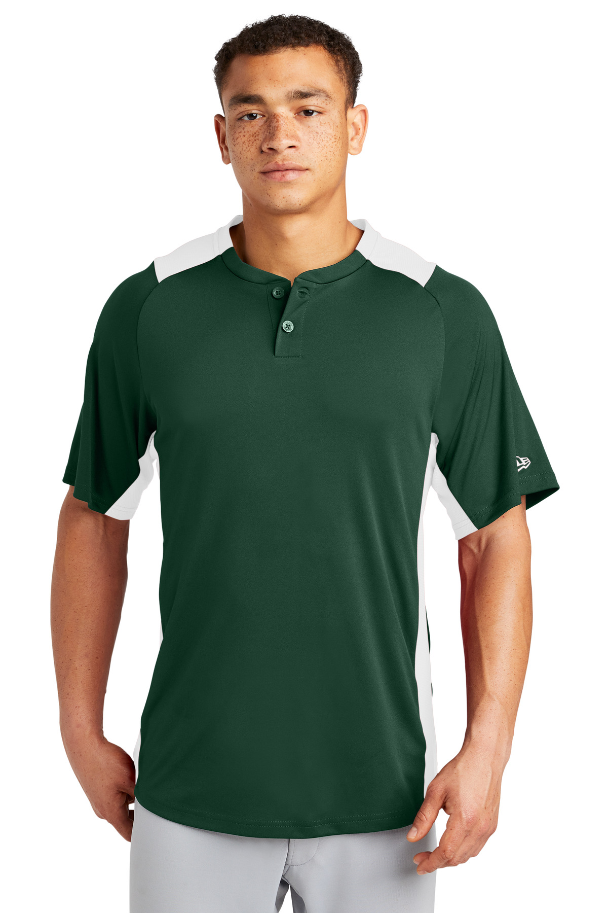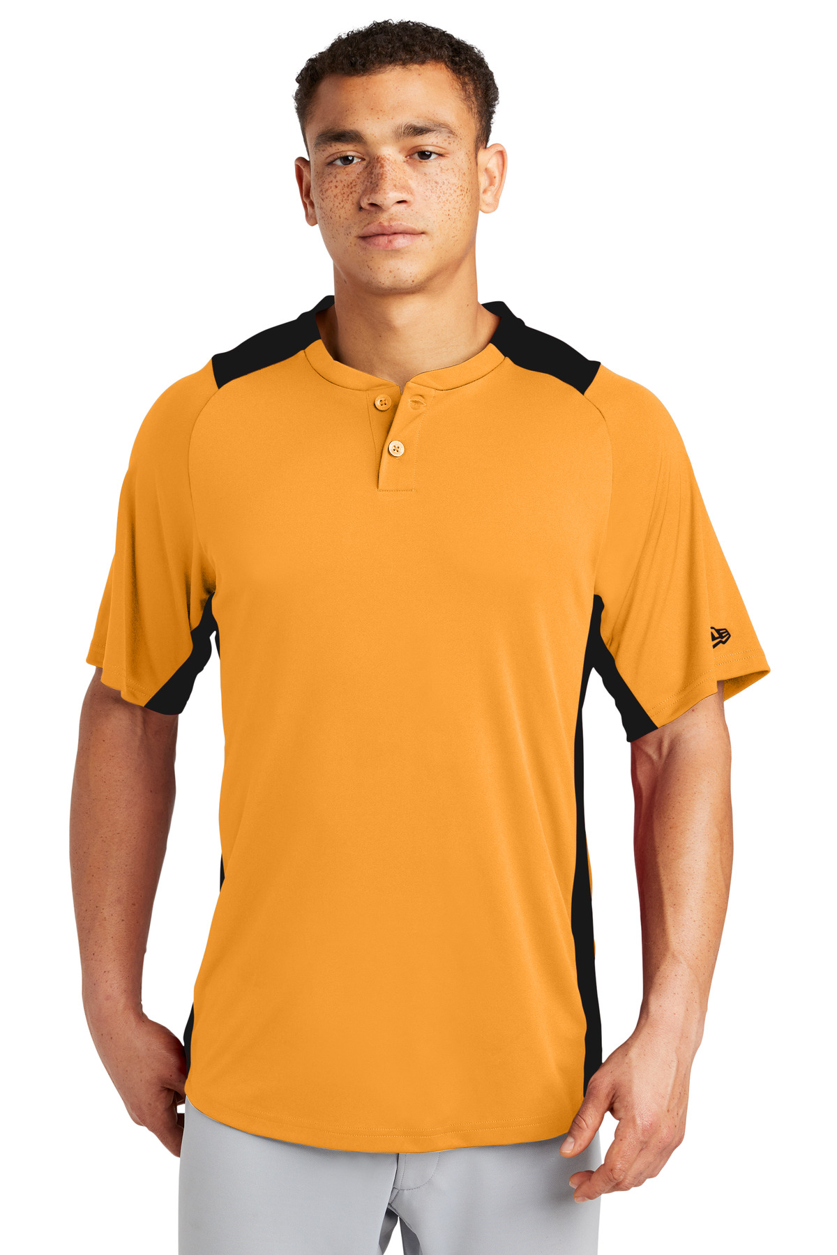 An exceptional training or on-field piece this moisture wicking snag-resistant jersey combines Diamond Era fabric with a smooth interlock body. 5.9-ounce polyester interlock double knit body 5.3-ounce 100% polyester Diamond Era jacquard at neck back yoke and side panels Heat transfer label for tag-free comfort Raglan sleeves Engraved New Era dyed-to-match buttons Embroidered New Era flag logo on left sleeve Shirttail hem