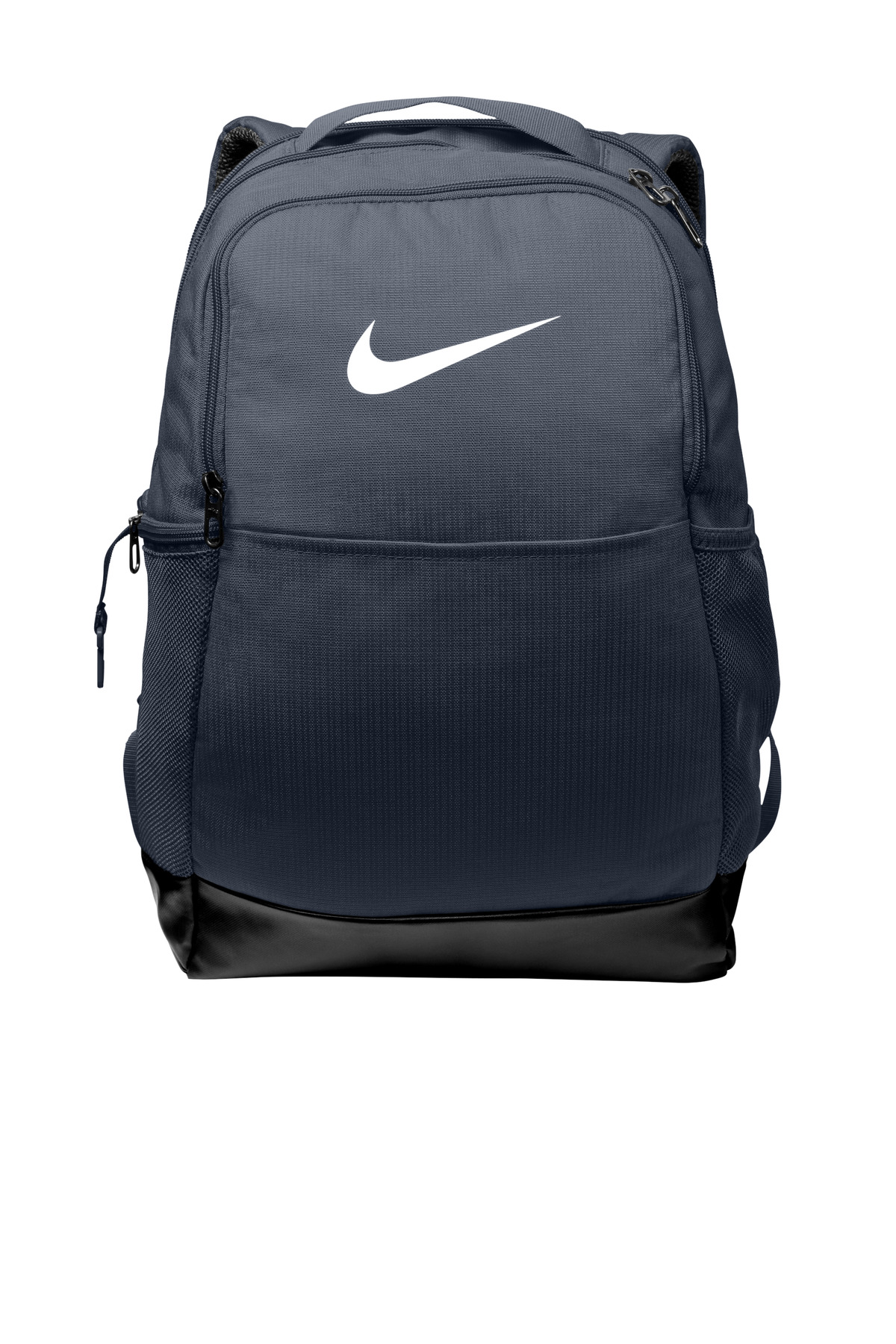 This versatile backpack is ideal for packing everything you need to get you through a busy training day or when youre away from your locker gym or home. 100% recycled polyester dobby Back panel and shoulder straps are padded for comfortable carrying Multiple pockets provide organized small-item storage Zippered main compartment offers spacious and secure storage Plush-lined zippered pocket for headphones or electronics Padded sleeve safely stores a laptop A water-resistant coating on bottom panel helps keep gear dry Contrast Swoosh design trademark Laptop sleeve fits most 15 laptops Dimensions: 18 h x 12 w x 7 d; Approx. 1 465 cubic inchesNote: Bags not intended for use by children 12 and under.