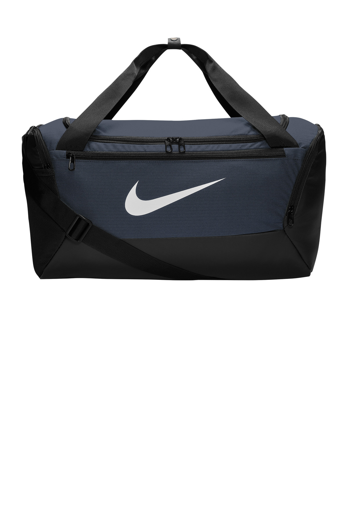 This 9.5L duffel has a spacious main compartment and specialized pockets to get you through your day from gym to office and home. A shoulder strap and handles offer plenty of carrying options.100% recycled polyester dobbyDual-zip main compartment provides secure ample storageShoe compartment stores footwear separately from other gearDouble handles and a shoulder strap offer versatile carrying optionsExterior zippered pocket allows easy access to your thingsInterior zippered pocket to stash valuablesContrast Swoosh design trademarkDimensions: 20 l x 11 w x 11 h; Approx. 2 503 cubic inchesNote: Bags not intended for use by children 12 and under.