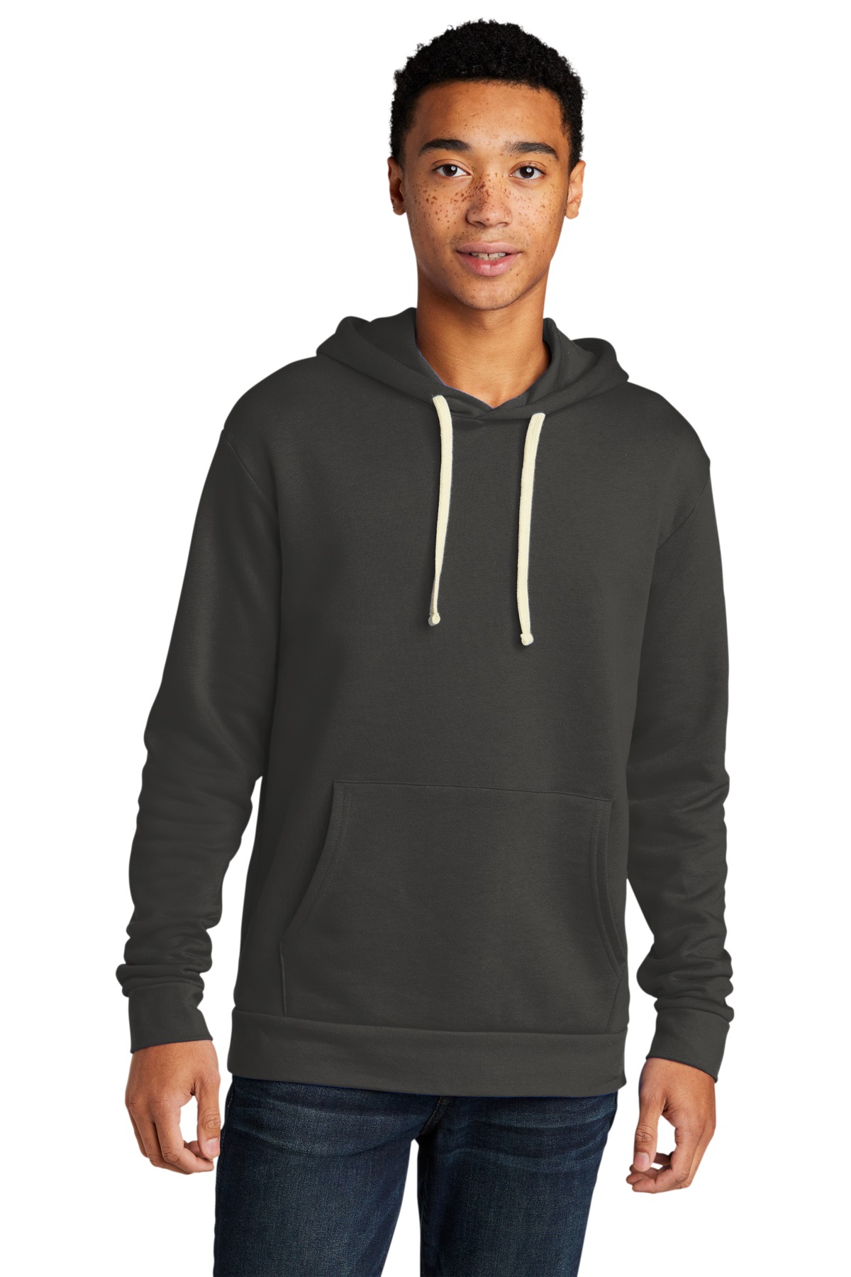 7.4-ounce 80/20 cotton/poly 100% cotton face Front pouch pocket 1x1 rib knit cuffs and hem Twill back neck tape Stitched eyelets Jersey-lined hood Natural flat drawcord Locker patch for printable label Side seamed Tear-away label