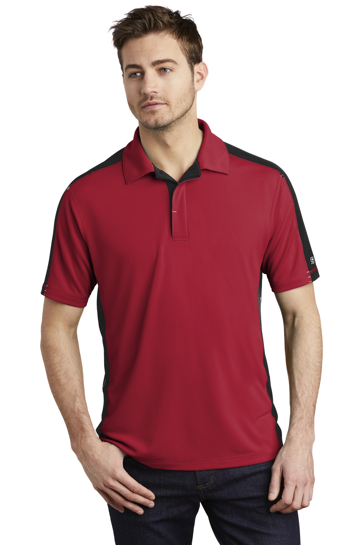 Veer off the beaten track in this polo with contrast bar tacks on the placket and sleeves contrast shoulder sleeve and side panels and O debossed metal rivets. 4.6-ounce 100% poly double-knit mesh with stay-cool wicking technology Flatlock stitching throughout OGIO heat transfer label for tag-free comfort Self-fabric collar OGIO jacquard neck tape 3-button hidden placket with dyed-to-match OGIO buttons Set-in open hem sleeves Contrast bar tacks and side panel stitch detail OGIO badge on left sleeve