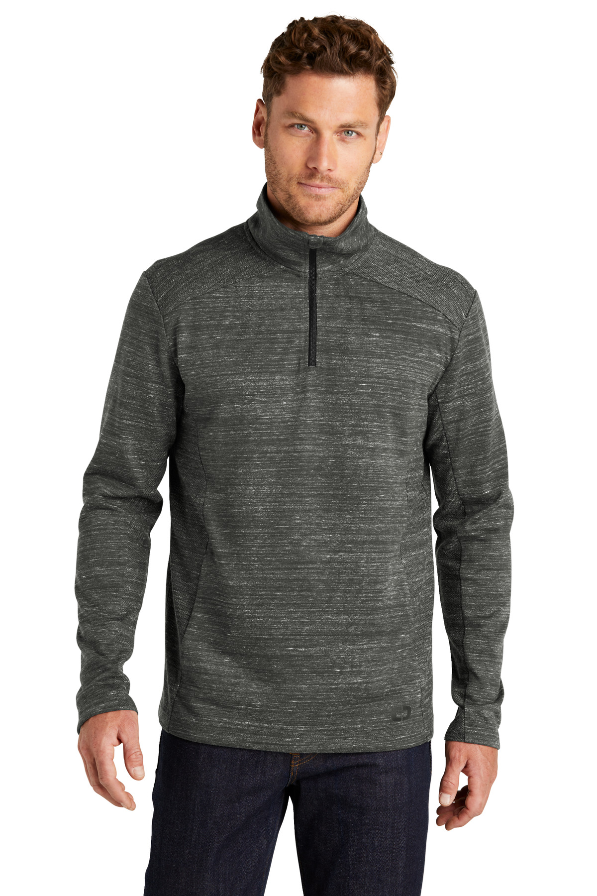 This easy-to-layer piece has a clean modern OGIO look with jacquard side panels for modern style. 9.7-ounce 96/4 poly/cotton knit shell 9.7-ounce 96/4 poly/cotton jacquard knit insets Locking reverse coil zipper Forward shoulders Jacquard knit insets on shoulders and side panels Zippered pockets Jacquard knit back panel that rolls forward to the forward shoulder Black reflective welding detail on back Black reflective O heat transfer on front left hem