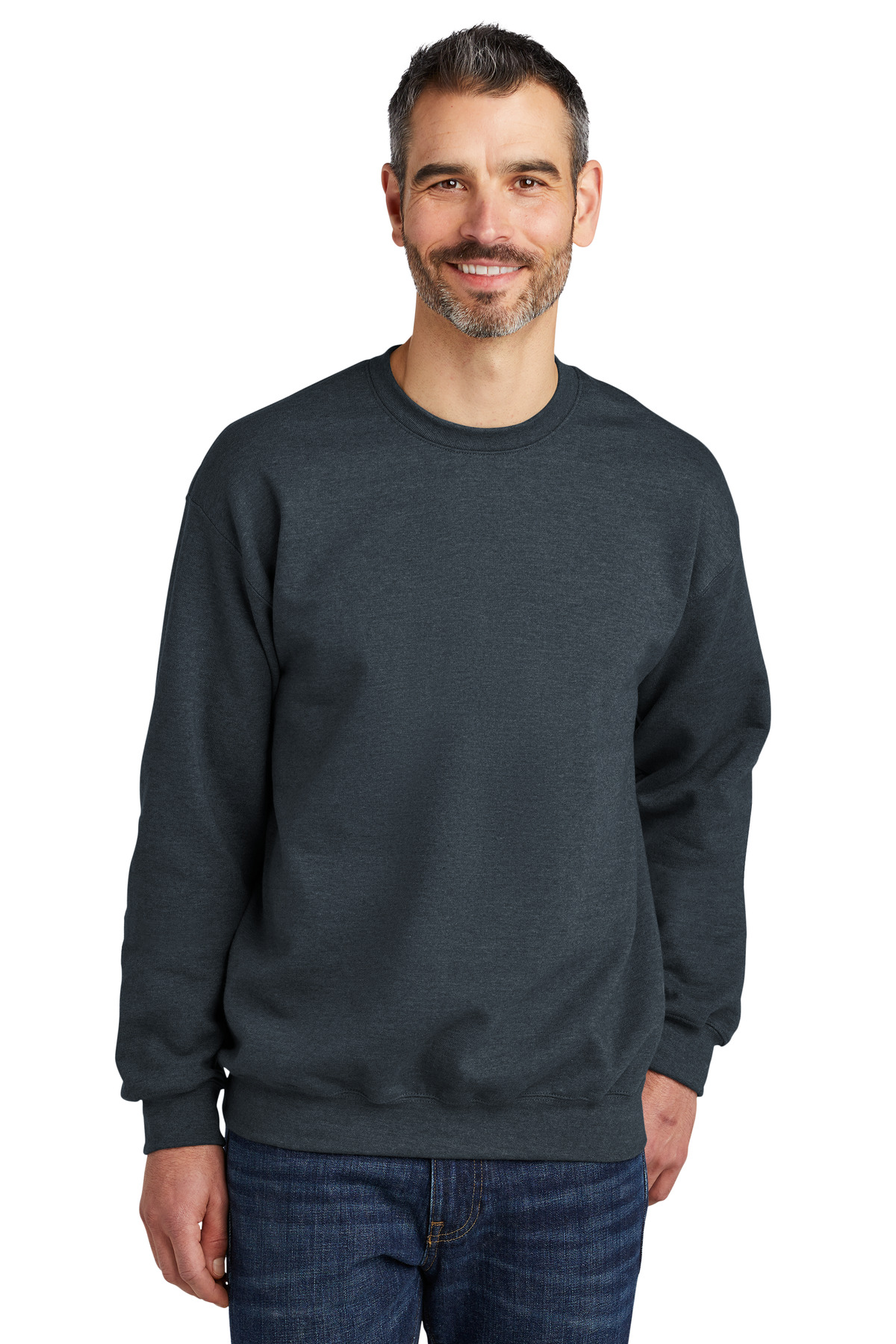 8.4-ounce 80/20 ring spun cotton/poly Two-end ring spun cotton face fabric 1x1 rib knit with spandex cuffs and bottom band Dropped shoulder Double-needle topstitching throughout Tubular body Classic fit Tearaway label