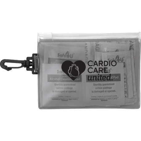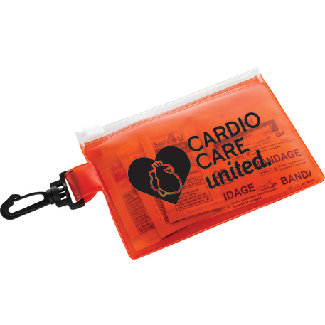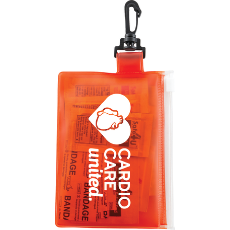The On The Go 12-Piece First Aid Pack is a travel first-aid kit in a PVC pouch with a plastic zip closure and a plastic carabiner for convenient first aid travel care. The kit includes 4 adhesive bandages, 1 alcohol cleansing wipe, 1 antiseptic wipe and 1 insect sting relief wipe. Also includes SPF15 Lip Balm, First Aid Burn Cream, 1% Hydrocortisone Cream, Triple Antibiotic Ointment & Instant Hand Sanitizer in single-use packets. Meets FDA requirements and is available for shipment within the United States (including Alaska, Hawaii & Puerto Rico). Not available for export. See General Information page for additional air shipment charges. Not available in Canada.