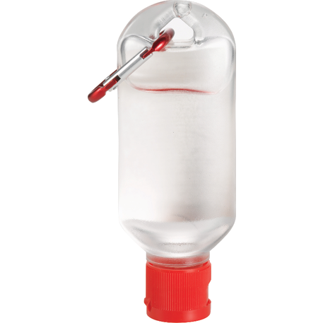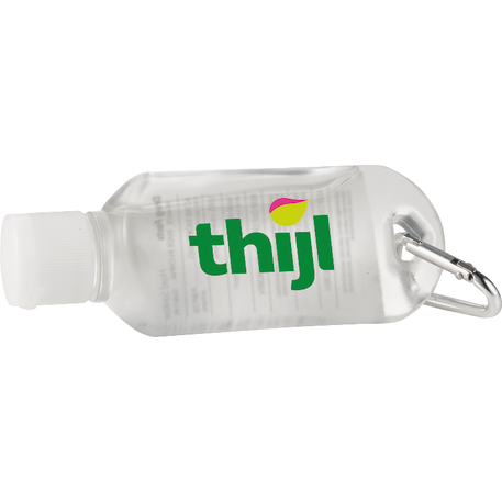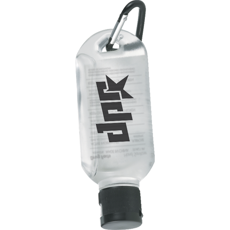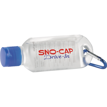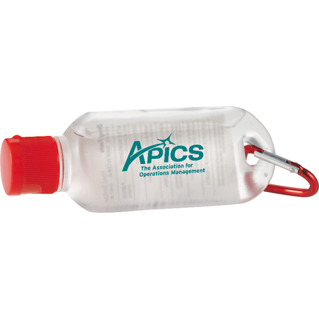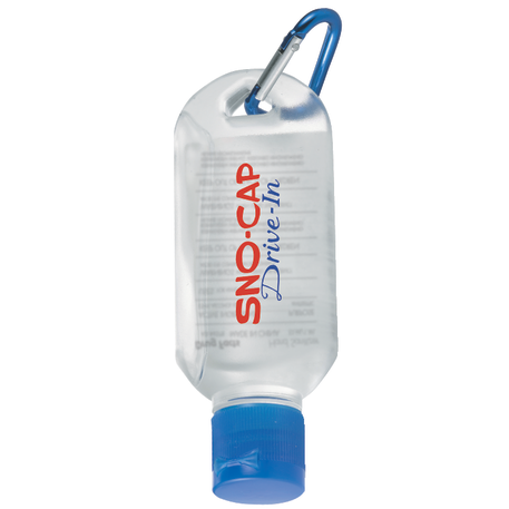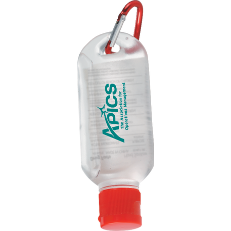 The 1.8oz Clip-N-Go Hand Sanitizer is an alcohol-based, 1.8-ounce hand sanitizer in tottle bottle with a flip-top lid and a 62% alcohol content. It includes a metal mini-carabiner to match the lid color. Meets FDA requirements and is available for shipment within the United States (including Alaska, Hawaii & Puerto Rico). Not available for export. See General Information page for additional air shipment charges. Multi-color decoration available.