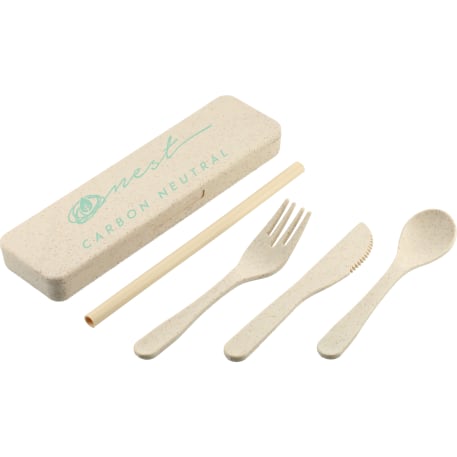 Help eliminate the need for one time plastic silverware with the Wheat Straw Utensils To Go. The set comes with a fork, spoon, knife, straw and carrying case. This item is not dishwasher safe. Through a partnership with 1% For The Planet, one percent of sales of this and all EcoSmart products will be donated to nonprofits dedicated to protecting the planet.