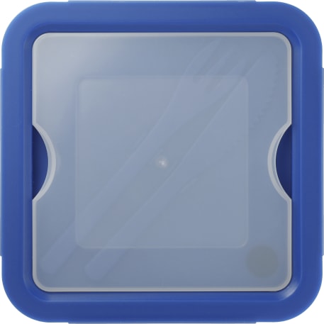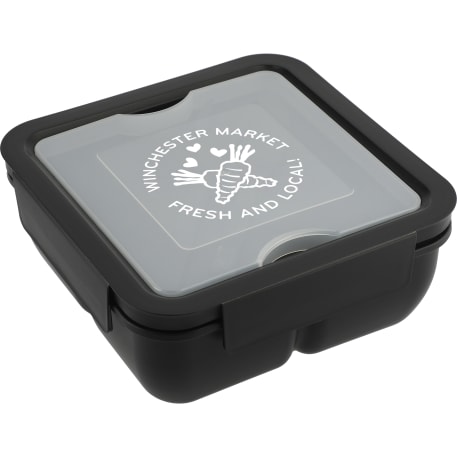 The Recycled Plastic Lunch To Go Set includes a fork and knife. The container features a small top compartment for use as storage for your utensils. Capacity is 1L. Through a partnership with 1% For The Planet, one percent of sales of all EcoSmart® products are donated to environmental nonprofits.