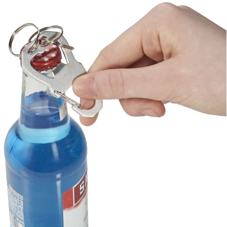 This keychain features 3-Piece Split Keyring, bottle opener for opening the lid easily, and carabiner (Not for Climbing). Perfect size to fit the keys and hook on the bags.