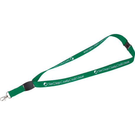 The Flat Panel Lanyard is a 13/16-inch wide lanyard that includes a breakaway neck clip and a swivel lobster clip. It features a flat panel for additional decoration.